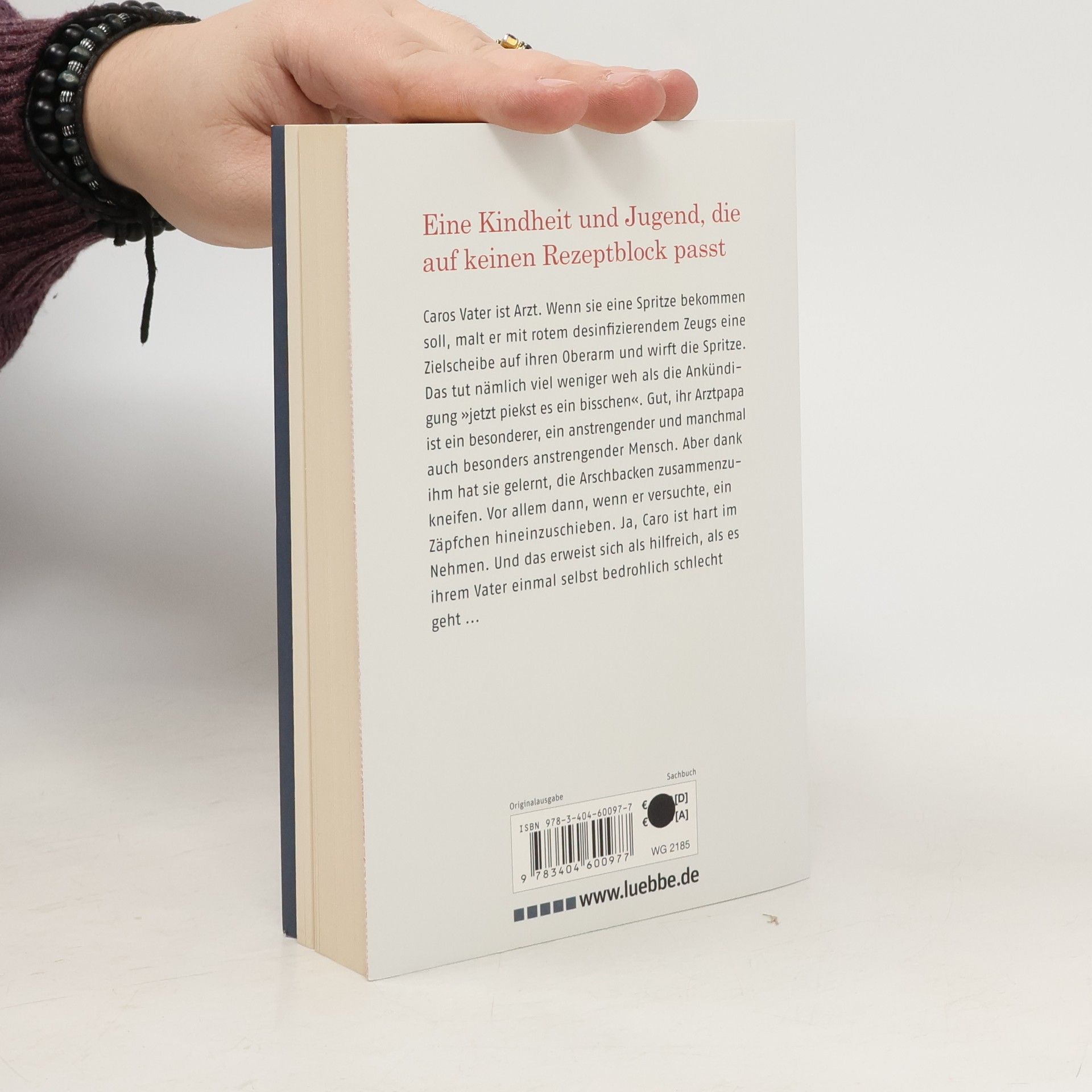 Caros Vater ist Arzt. Wenn sie eine Spritze bekommen soll, malt er mit rotem, desinfizierendem Zeugs eine Zielscheibe auf ihren Oberarm und wirft die Spritze. Werfen tut nämlich viel weniger weh als die Ankündigung „Das wird jetzt ein bisschen pieksen“. Gut, ihr Arztpapa ist ein besonderer, ein anstrengender und manchmal auch besonders anstrengender Mensch. Aber dank ihm hat sie gelernt, die Arschbacken zusammenzukneifen. Vor allem dann, wenn er versuchte, ein Zäpfchen hineinzuschieben. Ja, Caro ist hart im Nehmen. Und das erweist sich als hilfreich, als es ihrem Vater einmal selbst bedrohlich schlecht geht ...