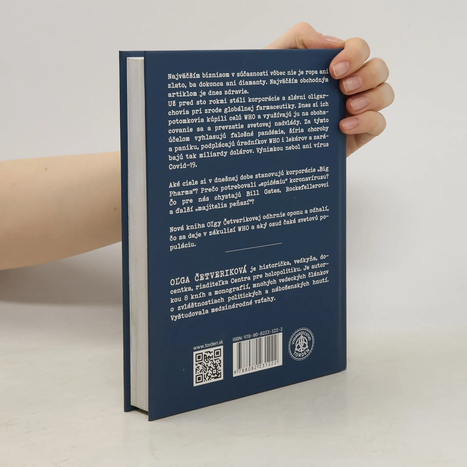 Kniha odhaľuje, že najväčším obchodným artiklom v súčasnosti nie je ropa ani zlato, ale zdravie. Korporácie a oligarchovia stáli pri zrode globálnej farmaceutiky pred sto rokmi a dnes ovládajú WHO, ktorú využívajú na obohacovanie a prevzatie svetovej nadvlády. Falošné pandémie a šírenie paniky, ako aj podplácanie úradníkov a lekárov, im umožňujú zarábať miliardy dolárov, pričom pandémia Covid-19 nie je výnimkou. Kniha skúma ciele korporácií „Big Pharma“ a ich záujmy v súvislosti s koronavírusom. Znepokojujúce otázky týkajúce sa plánov Billa Gatesa, Rockefellerovcov a ďalších oligarchov na čipovanie ľudstva prostredníctvom očkovania sú tiež predmetom diskusie. Autorka Olga Četveriková odhaľuje tajomstvá zákulisia WHO a osud svetovej populácie. L. Romanoff varuje pred nebezpečnými praktikami WHO, ktorá po celé desaťročia dostávala obrovské sumy na výskum vakcíny proti fertilite. Tieto vakcíny, tajne spojené s vakcínou proti tetanu, boli podávané viac ako 130 miliónom žien v 52 krajinách, pričom mnohé z nich boli sterilizované bez vedomia alebo súhlasu.