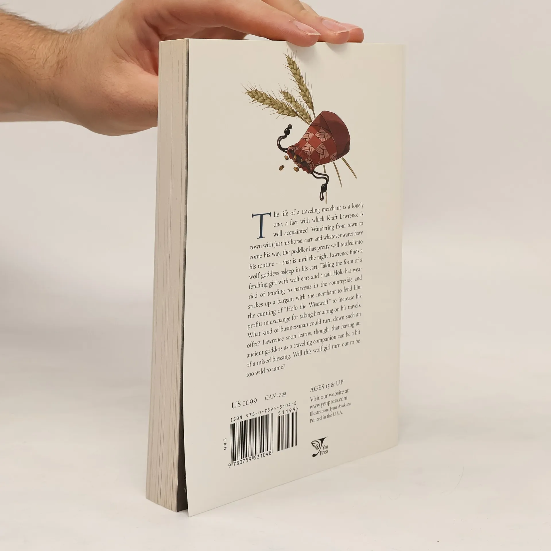 The life of a traveling merchant is a lonely one, a fact with which Kraft Lawrence is well acquainted. Wandering from town to town with just his horse, cart, and whatever wares have come his way, the peddler has pretty well settled into his routine-that is, until the night Lawrence finds a wolf goddess asleep in his cart. Taking the form of a fetching girl with wolf ears and a tail, Holo has wearied of tending to harvests in the countryside and strikes up a bargain with the merchant to lend him the cunning of "Holo the Wisewolf" to increase his profits in exchange for taking her along on his travels. What kind of businessman could turn down such an offer? Lawrence soon learns, though, that having an ancient goddess as a traveling companion can be a bit of a mixed blessing. Will this wolf girl turn out to be too wild to tame?