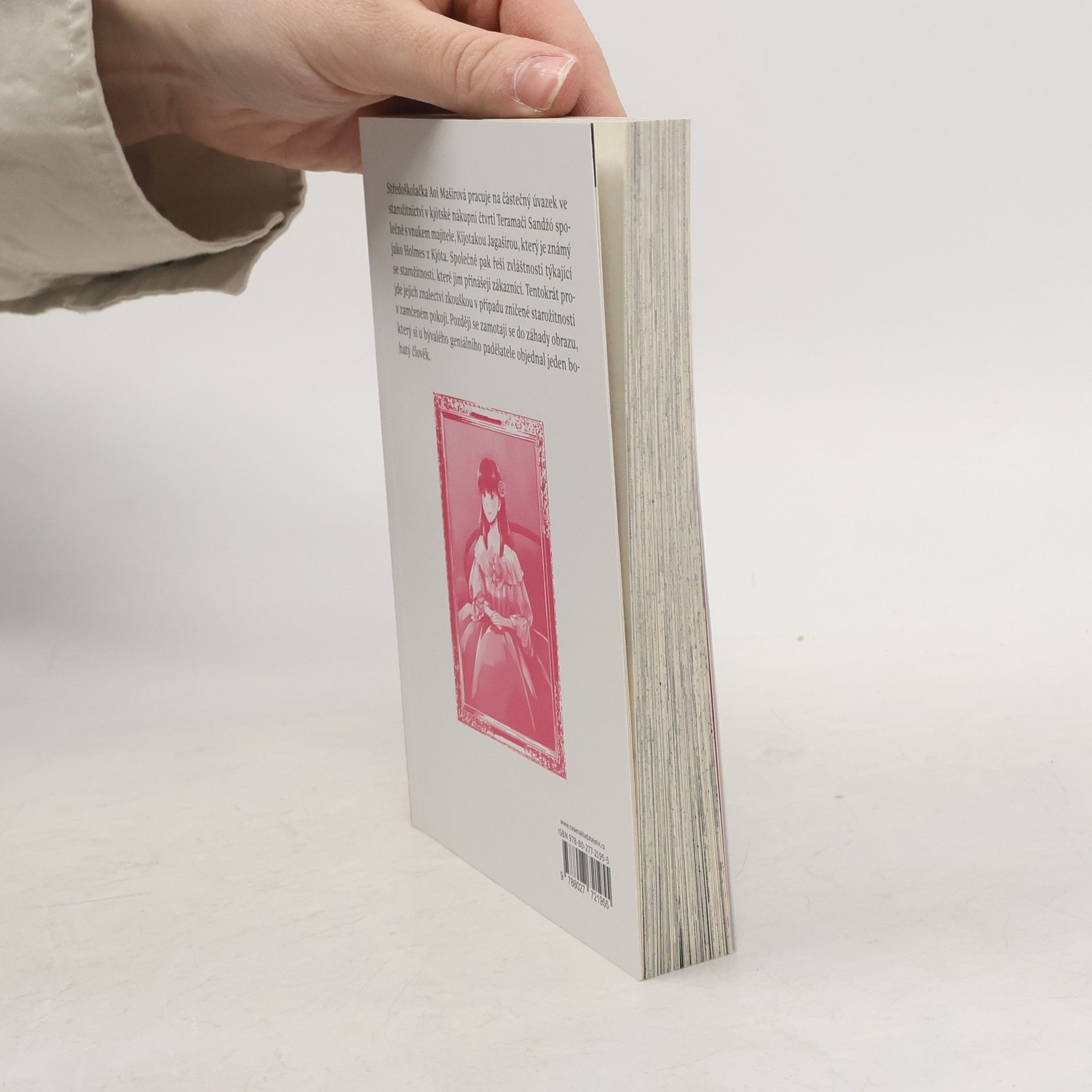 Středoškolačka Aoi Maširová pracuje na částečný úvazek ve starožitnictví Kura v kjótské nákupní čtvrti Teramači Sandžó, společně s vnukem majitele, Kijotakou Jagaširou, který je známý jako Holmes z Kjóta. Společně pak řeší zvláštnosti týkající se starožitností, které jim přinášejí zákazníci. Tentokrát projde jejich znalectví zkouškou v případu zničených starožitností v zamčeném pokoji, a zamotají se do záhady obrazu, který si u bývalého geniálního padělatele objednal jeden boháč.