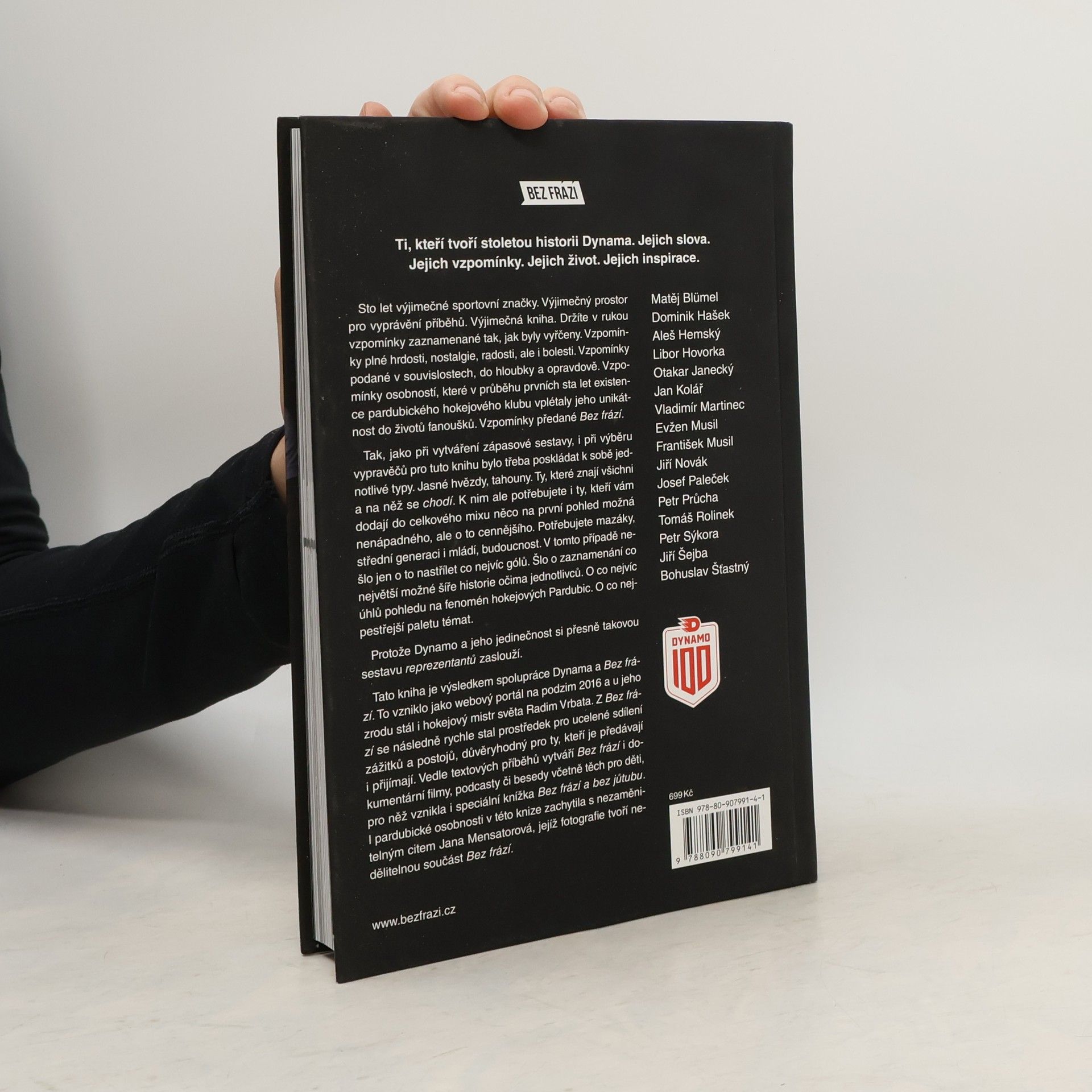 Životní příběhy osobností pardubického hokeje.Kniha vznikla ve spolupráci hokejového týmu Dynamo Pardubice a webovým portálem Bez Frází k stému výročí založení klubu.Ti, kteří tvoří stoletou historii Dynama. Jejich slova. Jejich vzpomínky. Jejich život. Jejich inspirace.Sto let výjimečné sportovní značky. Výjimečný prostor pro vyprávění příběhů. Výjimečná kniha. Matěj Blümel Dominik Hašek Aleš Hemský LIbor Hovorka Otakar Janecký Jan Kolář Vladimír Martinec Evžen Musil František Musil Jiří Novák Josef Paleček Petr Průcha Tomáš Rolinek Petr Sýkora Jiří Šejba Bohuslav Šťastný