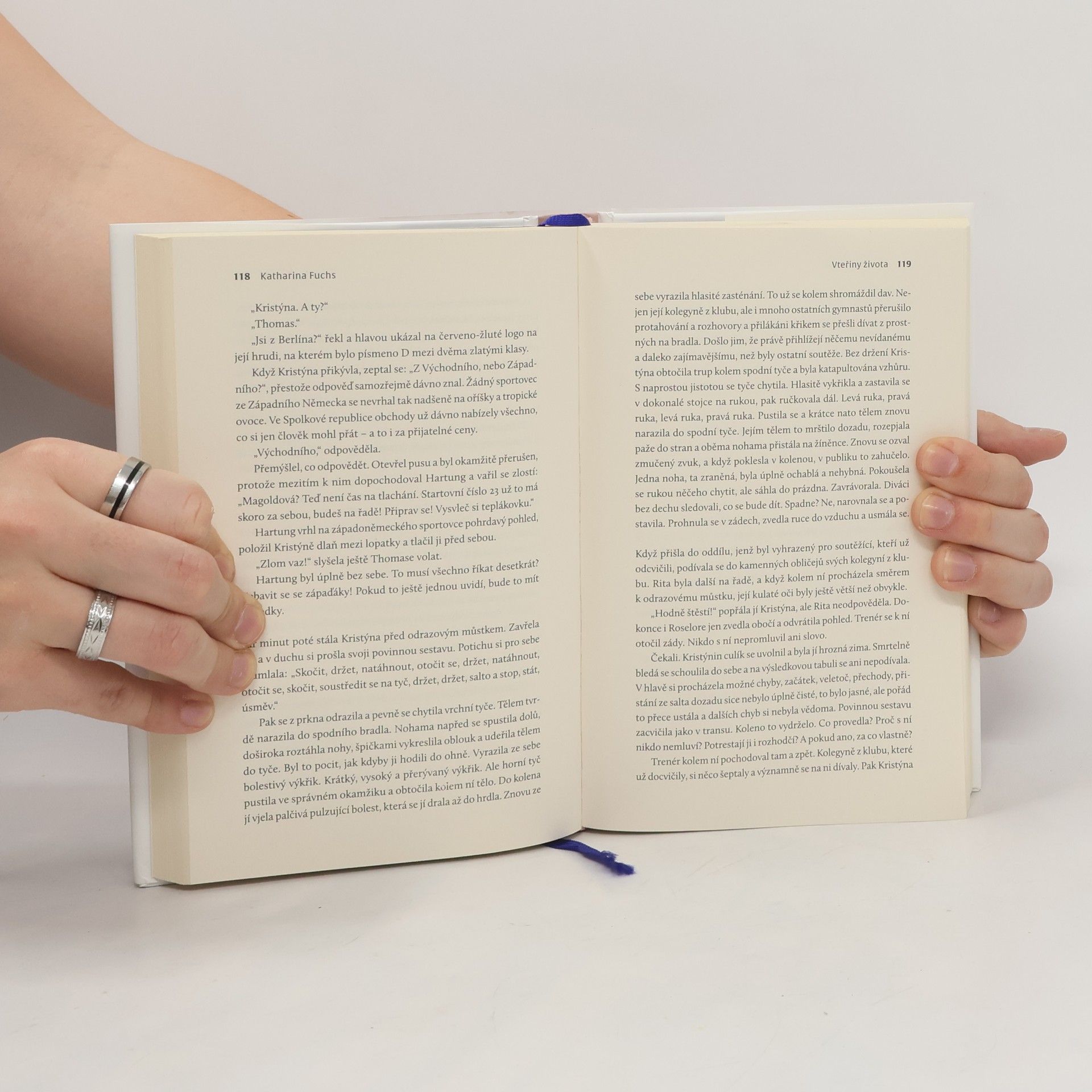 Příběh první německé novinářské fotografky a vrcholové gymnastky z NDR – pohnutý kus historie.Když Angeliku Steinovou v patnácti letech vyhodí ze školy, zdá se, že se její sen rozplynul. Žádný fotograf v Kasselu nechce přijmout do učení dívku, navíc ještě s nedokončenou školou. Angelika se ale nevzdává – a nakonec jí dá šanci fotograf, který před nedávnem utekl z NDR.Ve stejné době vrcholová gymnastka Kristýna Magoldová ve Východním Berlíně pilně trénuje, aby mohla NDR reprezentovat na olympijských hrách. Je to ale opravdu její sen? Při stavbě Berlínské zdi v roce 1961 se obě ženy za dramatických okolností setkávají.Katharina Fuchs vypráví s velkým smyslem pro detail a empatií příběh dvou stejně umíněných i odvážných mladých žen odehrávající se v Západním Německu a NDR. Nedávná historie ožívá spolu se dvěma pohnutými ženskými osudy.