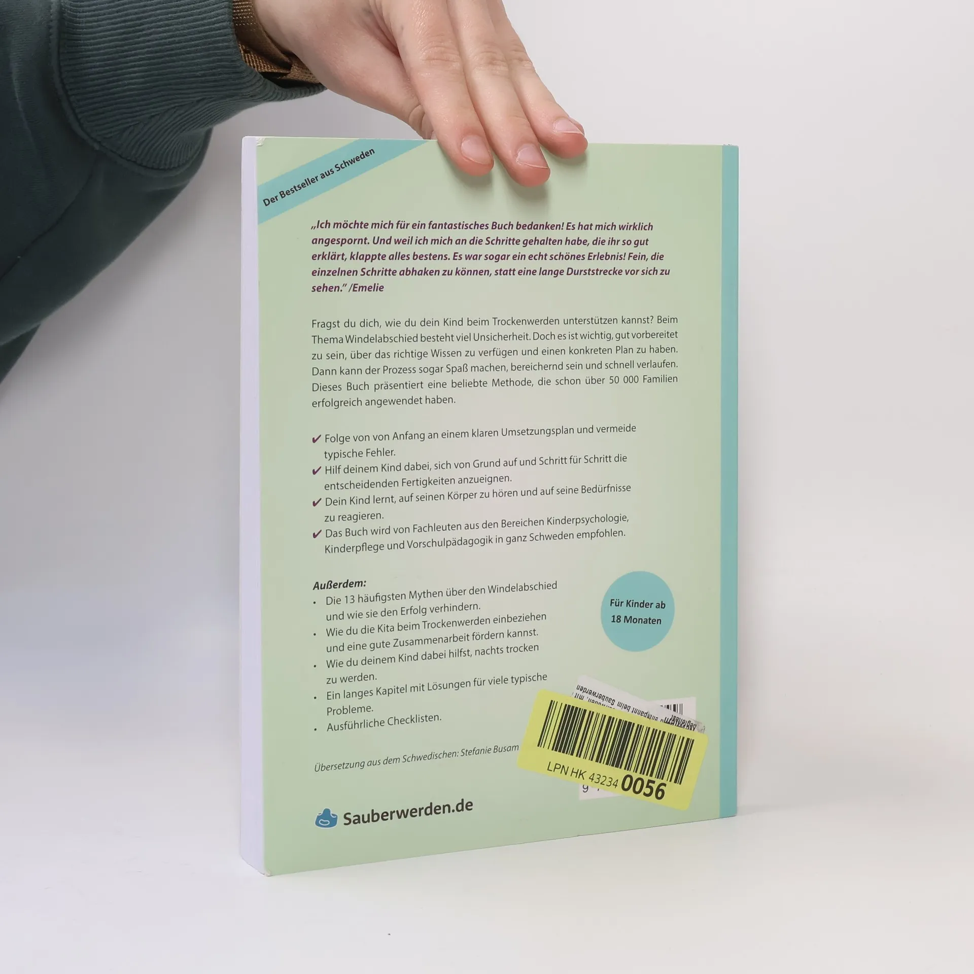 Der Bestseller aus Schweden! „Ich möchte mich für ein fantastisches Buch bedanken! Es hat mich wirklich angespornt. Und weil ich mich an die Schritte gehalten habe, die ihr so gut erklärt, klappte alles bestens. Es war sogar ein echt schönes Erlebnis!“ /Emelie Fragst du dich, wie du dein Kind beim Trockenwerden unterstützen kannst? Beim Thema Trockenwerden gibt es viel Unsicherheit. Doch mit der richtigen Vorbereitung und einem konkreten Plan kann der Prozess sogar Spaß machen. Dieses Buch stellt eine bewährte Methode vor, die bereits über 45.000 Familien erfolgreich genutzt haben. - Folge einem klaren Umsetzungsplan und vermeide typische Fehler. - Hilf deinem Kind, Schritt für Schritt die entscheidenden Fertigkeiten zu erlernen. - Dein Kind lernt, auf seinen Körper zu hören und selbst zu erkennen, wann es auf die Toilette muss. - Empfohlen von Fachleuten aus Kinderpsychologie, Kinderpflege und Vorschulpädagogik in Schweden. Zusätzlich werden die 13 häufigsten Mythen über den Windelabschied behandelt, Tipps zur Einbeziehung der Kita gegeben und Lösungen für typische Probleme angeboten. Das Buch richtet sich an Eltern, die den Windelabschied vor sich haben oder beim Prozess feststecken. Die Methode eignet sich für Kinder ab 18 Monaten. „Eindeutig die beste Methode! Erst war ich skeptisch. Aber unser Sohn, der das Töpfchen noch nie ausprobieren wollte, ist innerhalb von einer Woche aus den Windeln gekommen!“ /Nathalie Schl