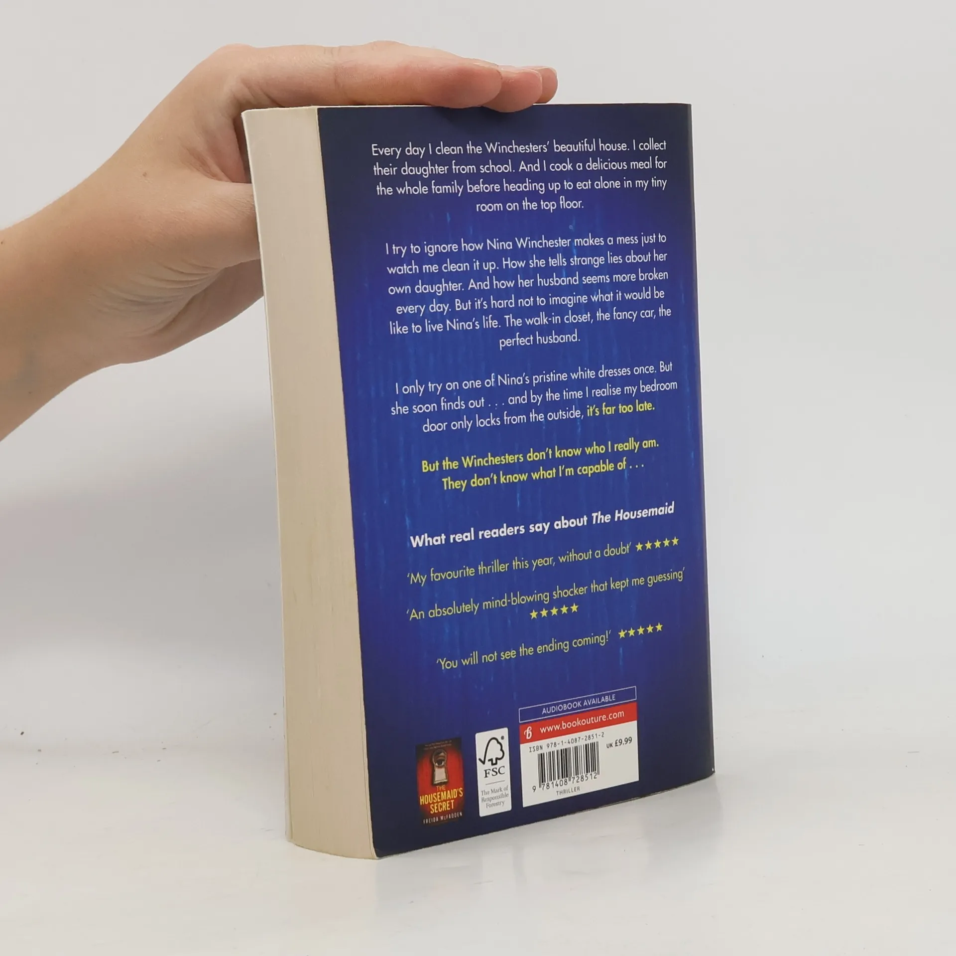 "Welcome to the family," Nina Winchester says as I shake her elegant, manicured hand. I smile politely, gazing around the marble hallway. Working here is my last chance to start fresh. I can pretend to be whoever I like. But I'll soon learn that the Winchesters' secrets are far more dangerous than my own . . .Every day I clean the Winchesters' beautiful house top to bottom. I collect their daughter from school. And I cook a delicious meal for the whole family before heading up to eat alone in my tiny room on the top floor. I try to ignore how Nina makes a mess just to watch me clean it up. How she tells strange lies about her own daughter. And how her husband Andrew seems more broken every day. But as I look into Andrew's handsome brown eyes, so full of pain, it's hard not to imagine what it would be like to live Nina's life. The walk-in closet, the fancy car, the perfect husband. I only try on one of Nina's pristine white dresses once. Just to see what it's like. But she soon finds out... and by the time I realize my attic bedroom door only locks from the outside, it's far too late. But I reassure myself: the Winchesters don't know who I really am. They don't know what I'm capable of . . .