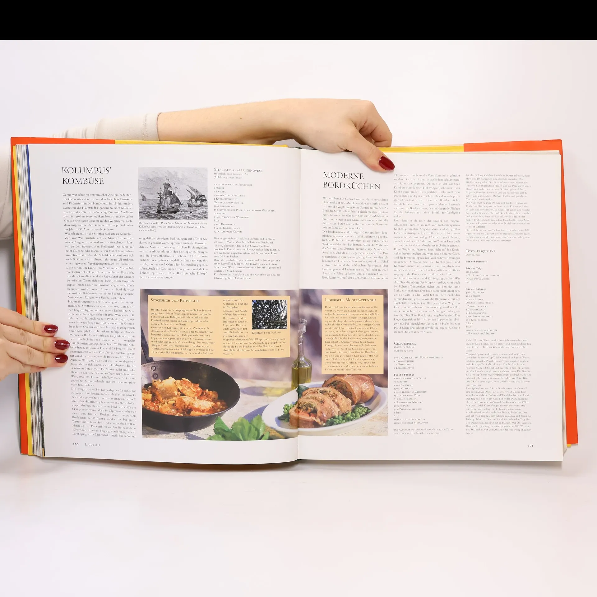 Die reich illustrierte Publikation ist ein faszinierender Reisebericht, in dem die Küche und das Essen im historischen, geografischen und kulturellen Kontext im Mittelpunkt stehen. Sie führt uns durch ganz Italien und bietet alles, was für die italienische Küche wesentlich ist und sie so begehrt und inspirierend macht. Die Auswahl beschränkt sich nicht nur auf bekannte Köstlichkeiten wie Pizza, Pesto, Risotto, Parmesan oder Gorgonzola, sondern ist viel umfangreicher und lässt keine Delikatesse aus – von den Käseplätzchen frico über die Pizzette bis hin zu süßen Weizenbrötchen und lebensechtem Marzipanfrüchten. Das Buch dient auch als kompetenter Ratgeber für die Auswahl von Lebensmitteln und hilft, qualitativ hochwertige Produkte von Nachahmungen zu unterscheiden.