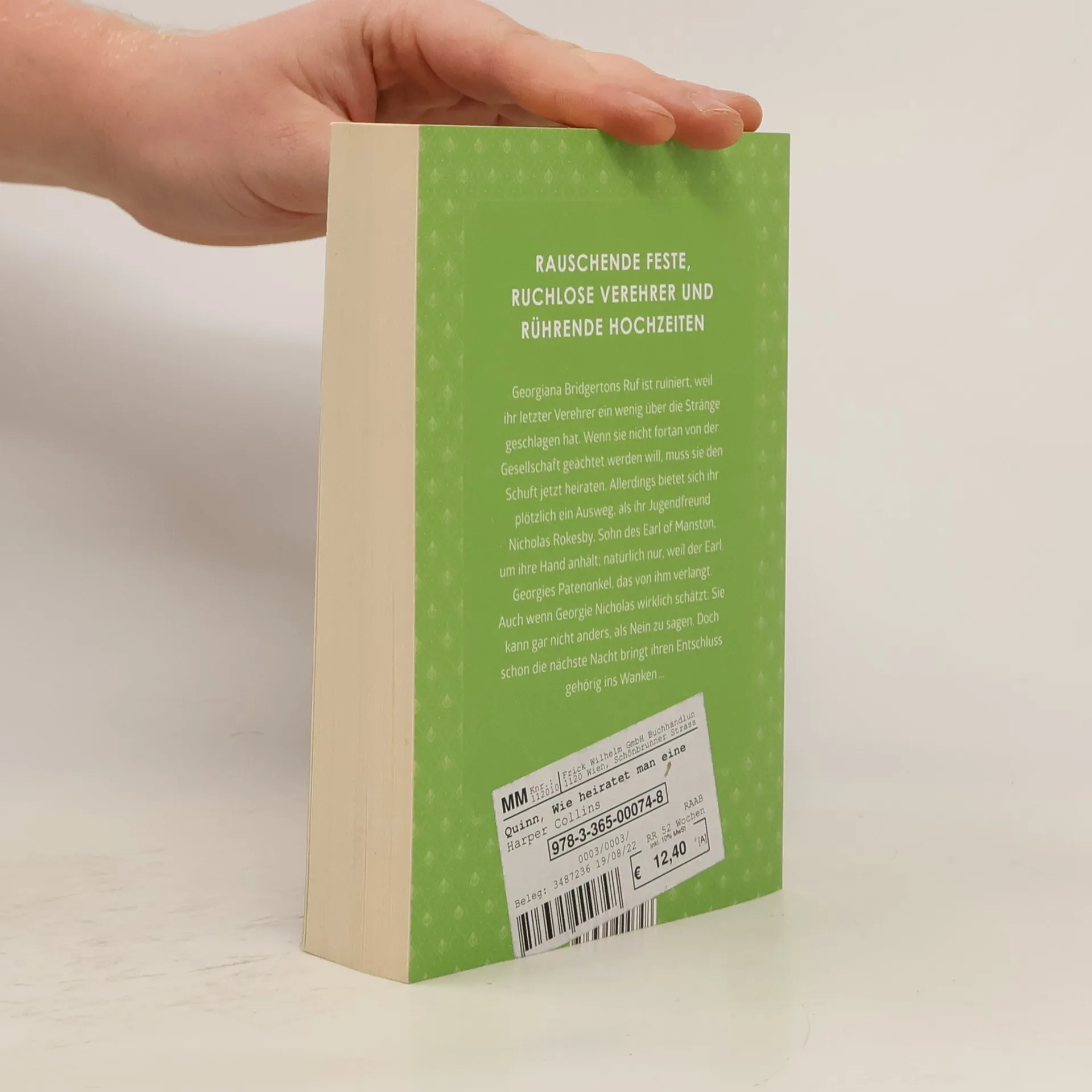 Rauschende Feste, ruchlose Verehrer und rührende Hochzeiten – das Must-Read für alle Fans historischer Romane. Georgiana Bridgertons Ruf ist ruiniert, weil ihr letzter Verehrer ein wenig über die Stränge geschlagen ist. Wenn sie nicht fortan von der Gesellschaft geächtet werden will, muss sie den Schuft jetzt heiraten. Allerdings bietet sich ihr plötzlich ein Ausweg, als ihr Jugendfreund Nicholas Rokesby, Sohn des Earl of Manston, um ihre Hand anhält; natürlich nur, weil der Earl, Georgies Patenonkel, das von ihm verlangt. Auch wenn Georgie Nicholas wirklich schätzt, sie kann gar nicht anders, als Nein zu sagen. Doch schon die nächste Nacht bringt ihren Entschluss gehörig ins Wanken ...