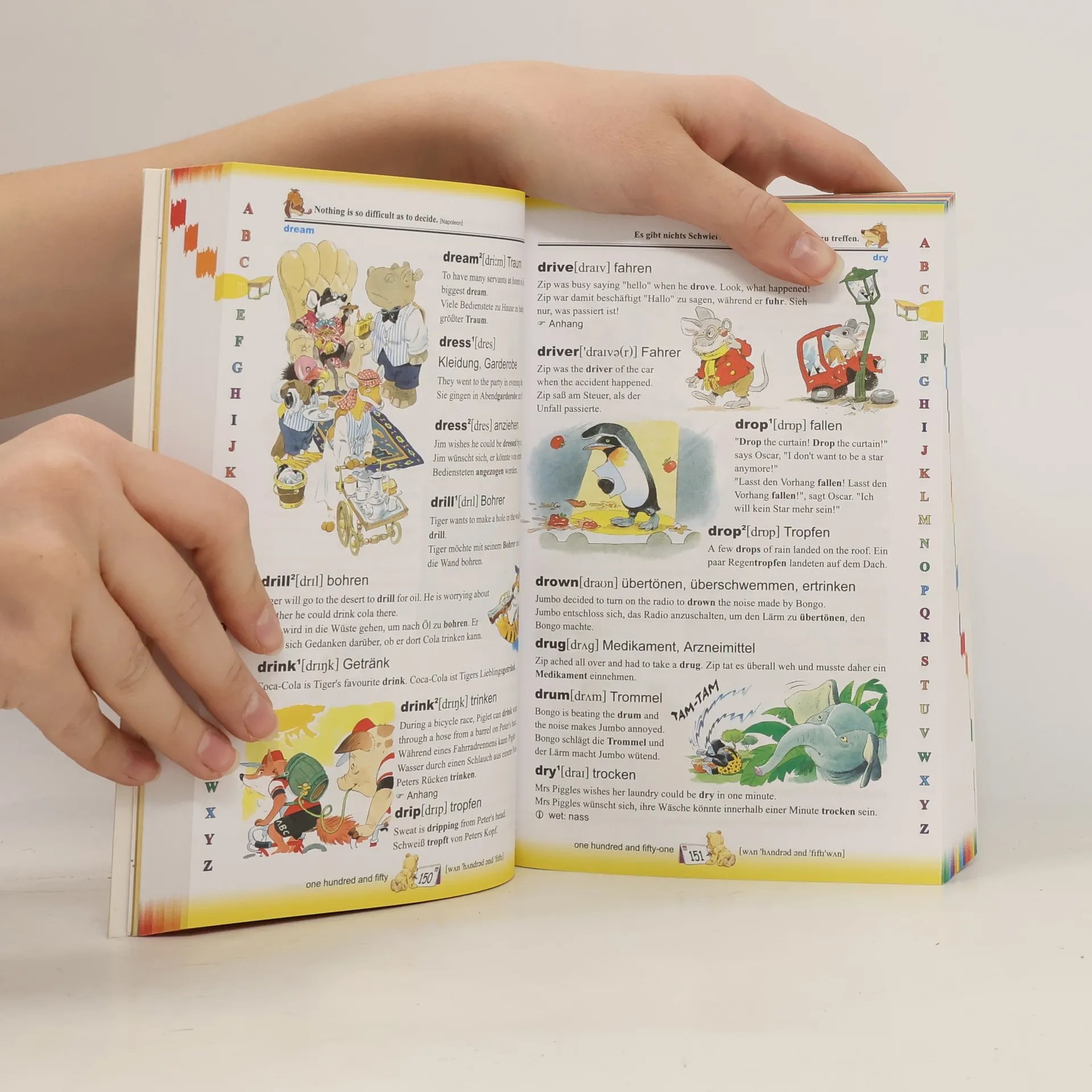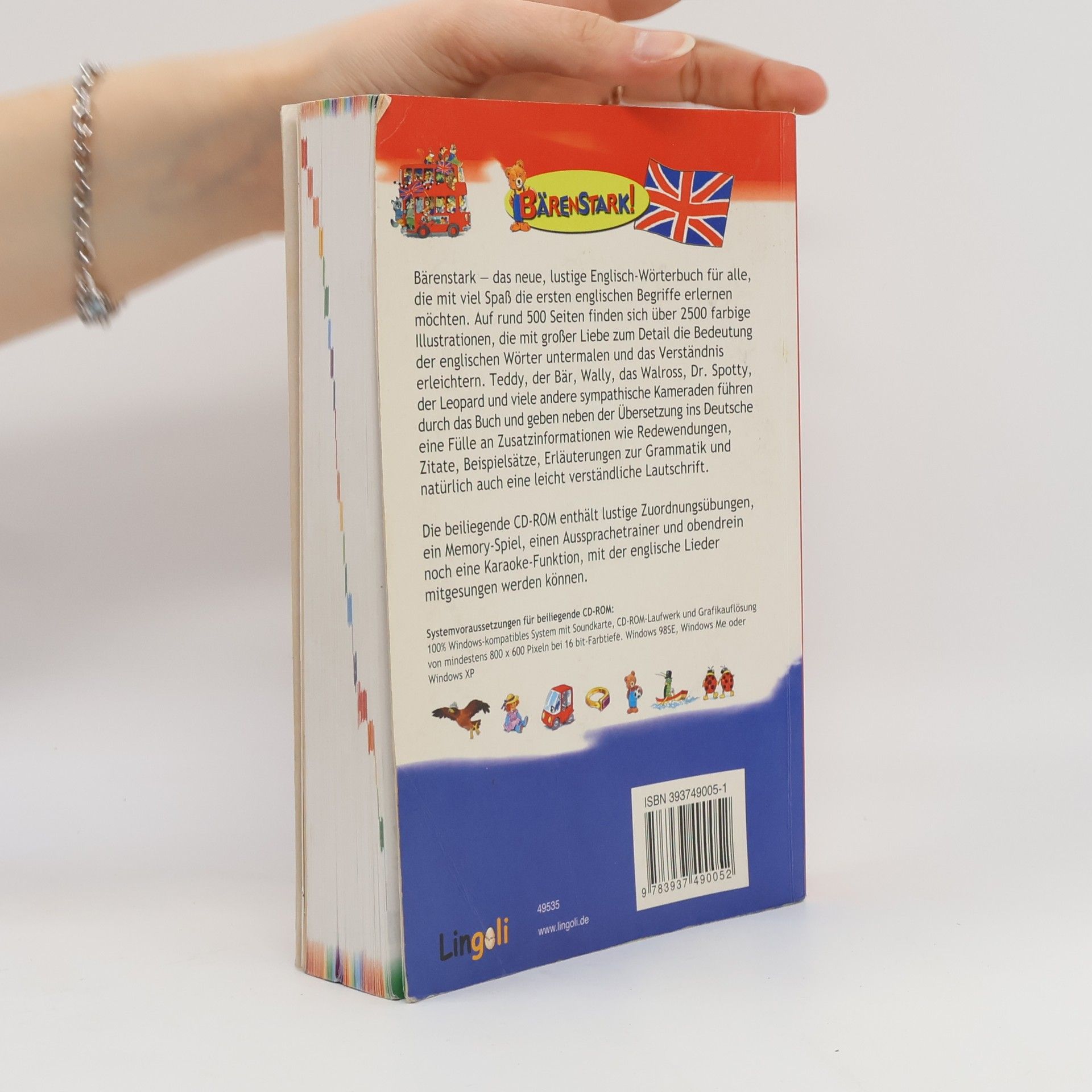 Auf rund 500 Seiten finden sich über 2500 farbige Illustrationen, die mit großer Liebe zum Detail die Bedeutung der englischen Wörter untermalen und das Verständnis erleichtern. Teddy, der Bär, Wally, das Walross, Dr. Spotty, der Leopard und viele andere sympathische Kameraden führen durch das Buch und geben neben der Übersetzung ins Deutsche eine Fülle an Zusatzinformationen wie Redewendungen, Zitate, Beispielsätze, Erläuterungen zur Grammatik und natürlich auch eine leicht verständliche Lautschrift. Windows 98SE, Windows Me oder Windows XP