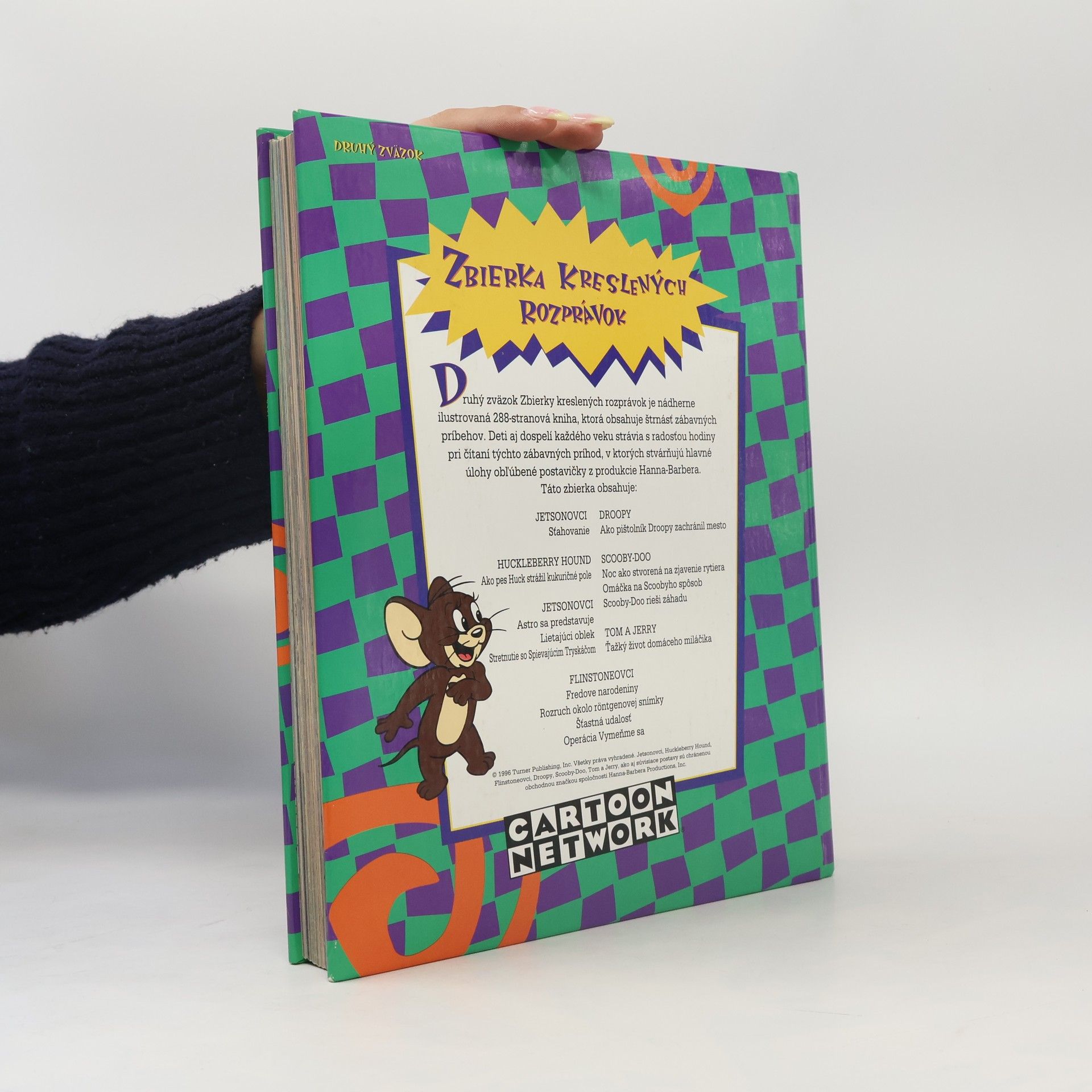 Druhý zväzok Zbierky kreslených rozprávok je nádherne ilustrovaná 286-stranová kniha, ktorá obsahuje 14 zábavných príbehov z produkcie Hanna-Barbera: Jetsonovci, Droopy, Huckleberry Hound, Scooby-Doo, Tom a Jerry, Flinstoneovci. Pevná väzba, jazyk slovenský, vydavateľstvo Cartoon Network, bohato ilustrovaná.
