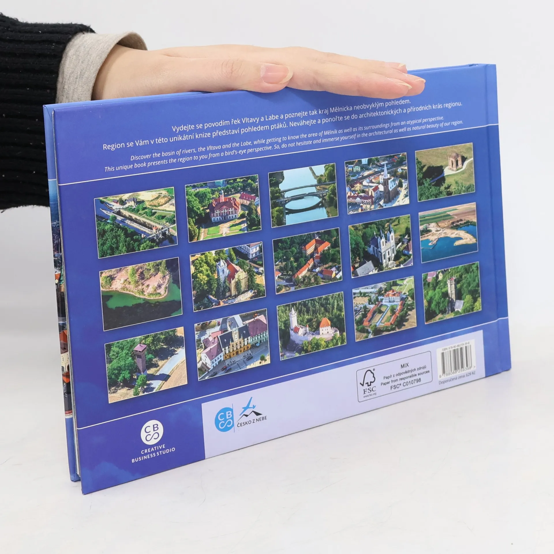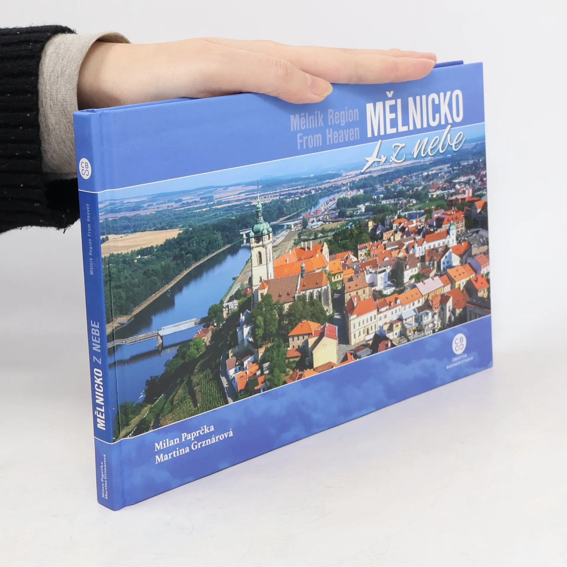 Kniha „Mělnicko z nebe“ je určena pro všechny, co chtějí vidět jiné a originální pohledy na tento výjimečný region. A je opravdu na co se dívat. Soutok Vltavy a Labe pod strmými vinohrady, končícími starobylým Mělníkem je okouzlující. Zajímavé jsou zdymadla i říční stavby, krásu knize dodávají pohledy na pestrou zemědělskou krajinu i nádherné zámky, jako jsou například Veltrusy a Liblice a zlatým hřebem je hrad Kokořín uprostřed hustých zelených lesů. Neobyčejným způsobem jsou zachyceny pohledy na obce, jejich zajímavosti, rozmanitost a barevnost polí, luk i rybníčků a originální je kompozice těžby písku, kde stroje v pískovně připomínají tak trochu pavouka. Pomocí této knihy se můžete vznést nad krajinu i z pohodlí domova a vychutnat si trochu jiné pohledy, jak je možná neznáte.