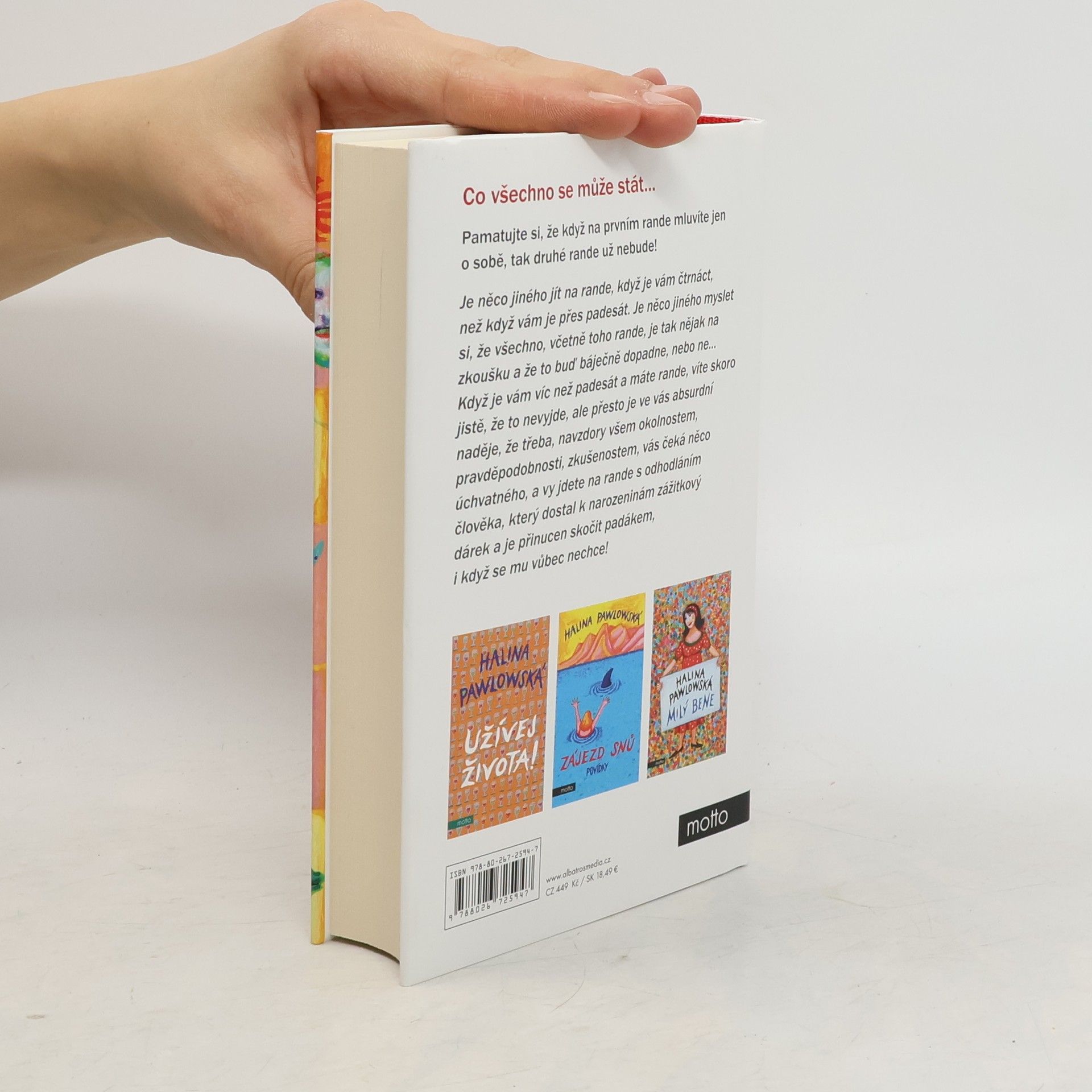 Krátké i dlouhé povídky Haliny Pawlowské. Pamatujte si, že když na prvním rande mluvíte jen o sobě, tak druhé rande už nebude! Je něco jiného jít na rande, když je vám čtrnáct, než když vám je přes padesát. Je něco jiného myslet si, že všechno, včetně toho rande, je tak nějak na zkoušku, a že to buď báječně dopadne, nebo ne Když je vám víc než padesát a máte rande, víte skoro jistě, že to nevyjde, ale přesto je ve vás absurdní naděje, že třeba, navzdory všem okolnostem, pravděpodobnosti, zkušenostem, vás čeká něco úchvatného a vy jdete na rande s odhodláním člověka, který dostal k narozeninám zážitkový dárek a je přinucen skočit s padákem, i když se mu vůbec nechce!