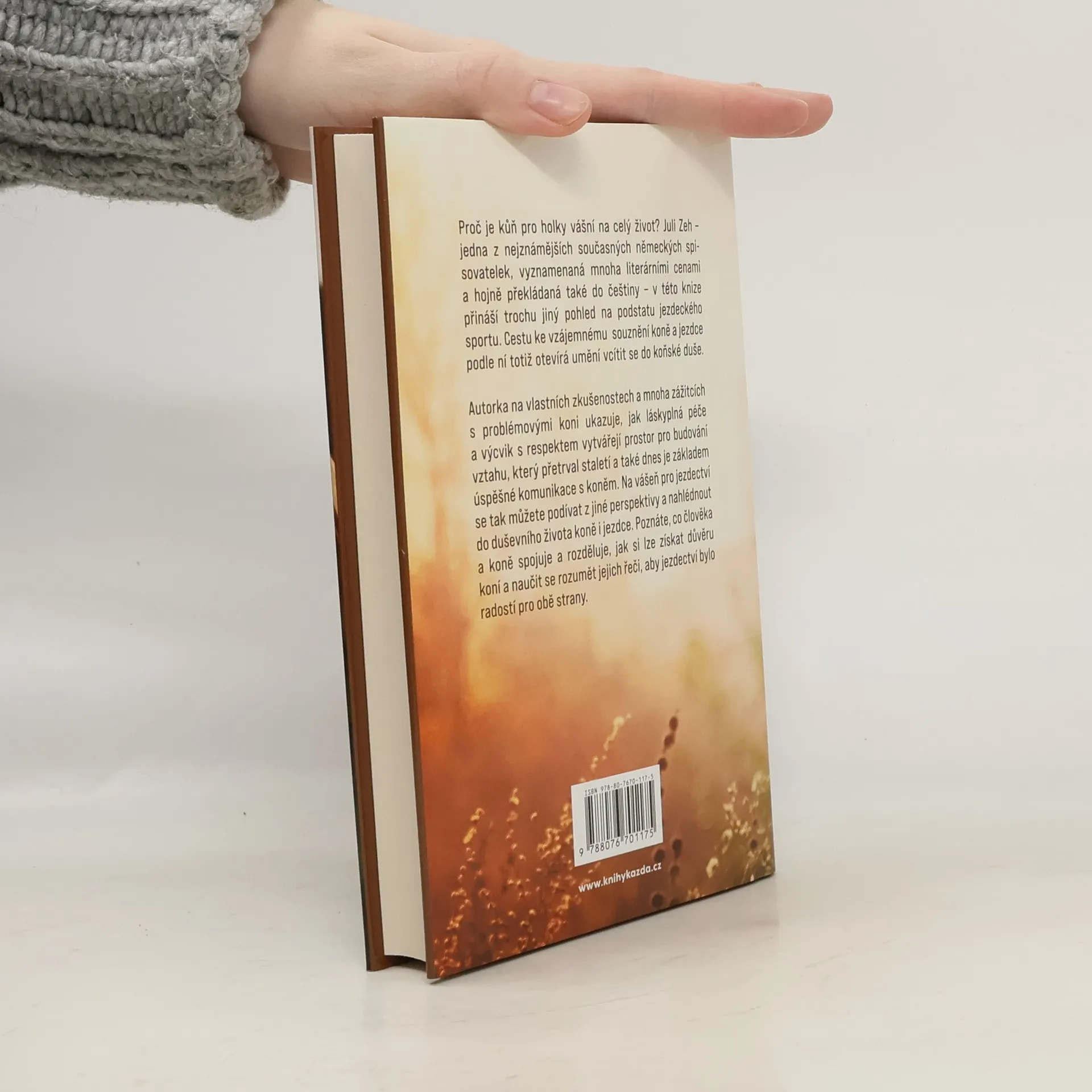 Proč je kůň pro holky vášní na celý život?Juli Zeh - jedna z nejznámějších současných německých spisovatelek, vyznamenaná mnoha literárními cenami a hojně překládaná také do češtiny - v této knize přináší trochu jiný pohled na podstatu jezdeckého sportu. Umění vcítit se do koňské duše otevírá cestu k oboustrannému souznění koně a jeho jezdkyně. Autorka na mnoha osobních příbězích o zkušenostech s problémovými koni ukazuje, jak láskyplná péče a výcvik s respektem ke koňské duši vytvářejí prostor pro budování vztahu, který přetrval staletí, a také dnes je základem úspěšné komunikace s jezdeckým koněm. Na vášeň pro jezdectví se tak můžete podívat z velmi zajímavé perspektivy a nahlédnout do duševního života koně i jezdce. Poznáte, co člověka a koně spojuje a rozděluje, jak si lze získat důvěru koní a naučit se rozumět jejich řeči, aby jezdectví bylo štěstím pro obě strany.