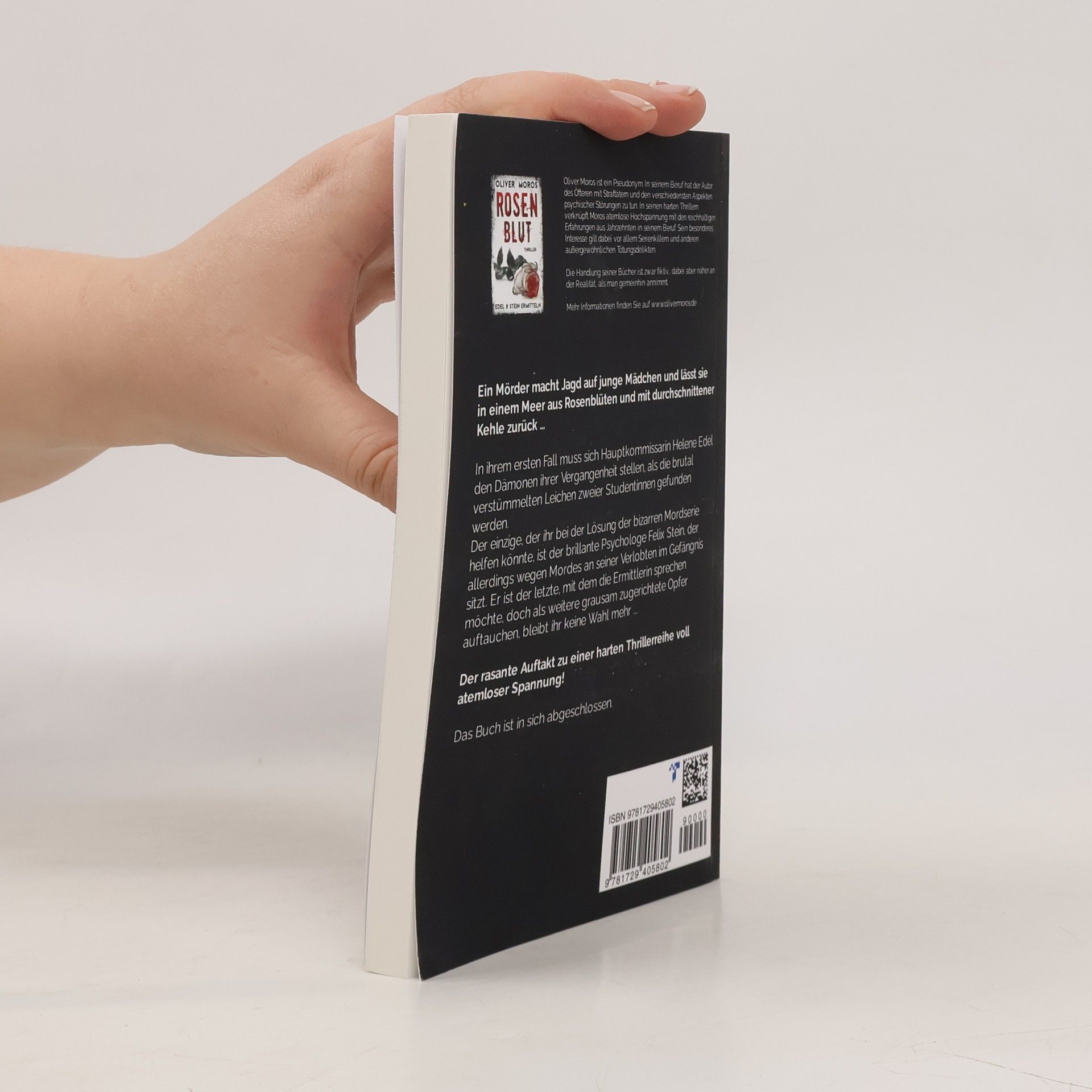Er lässt sie in einem Meer aus Rosenblüten und mit durchschnittener Kehle zurück ...In ihrem ersten Fall muss sich Hauptkommissarin Helene Edel den Dämonen ihrer Vergangenheit stellen, als die brutal verstümmelten Leichen zweier Studentinnen gefunden werden. Der einzige, der ihr bei der Lösung der bizarren Mordserie helfen könnte, ist der brillante Psychologe Felix Stein, der allerdings wegen Mordes an seiner Verlobten im Gefängnis sitzt. Er ist der letzte, mit dem die Ermittlerin sprechen möchte, um den Täter zu finden, doch als weitere grausam zugerichtete Opfer des Psychopathen auftauchen, bleibt ihr keine Wahl mehr ...Der rasante Auftakt zu einer harten Thrillerreihe voll atemloser Spannung - Das Buch ist in sich abgeschlossen. ***** Bisher von Oliver Moros erschienen: Die Edel & Stein Thriller: Band 1: ROSENBLUT Band 2: TODESKREIS Band 3: SÜNDENKREUZ Band 4: ALTE SCHULD Band 5: TODESZEILEN Band 6: TOTER ENGEL Band 7: RATTENFÄNGER Band 8 erscheint im Frühjahr 2023 Außerdem: STILL MEIN HERZ (Küsten-Thriller)