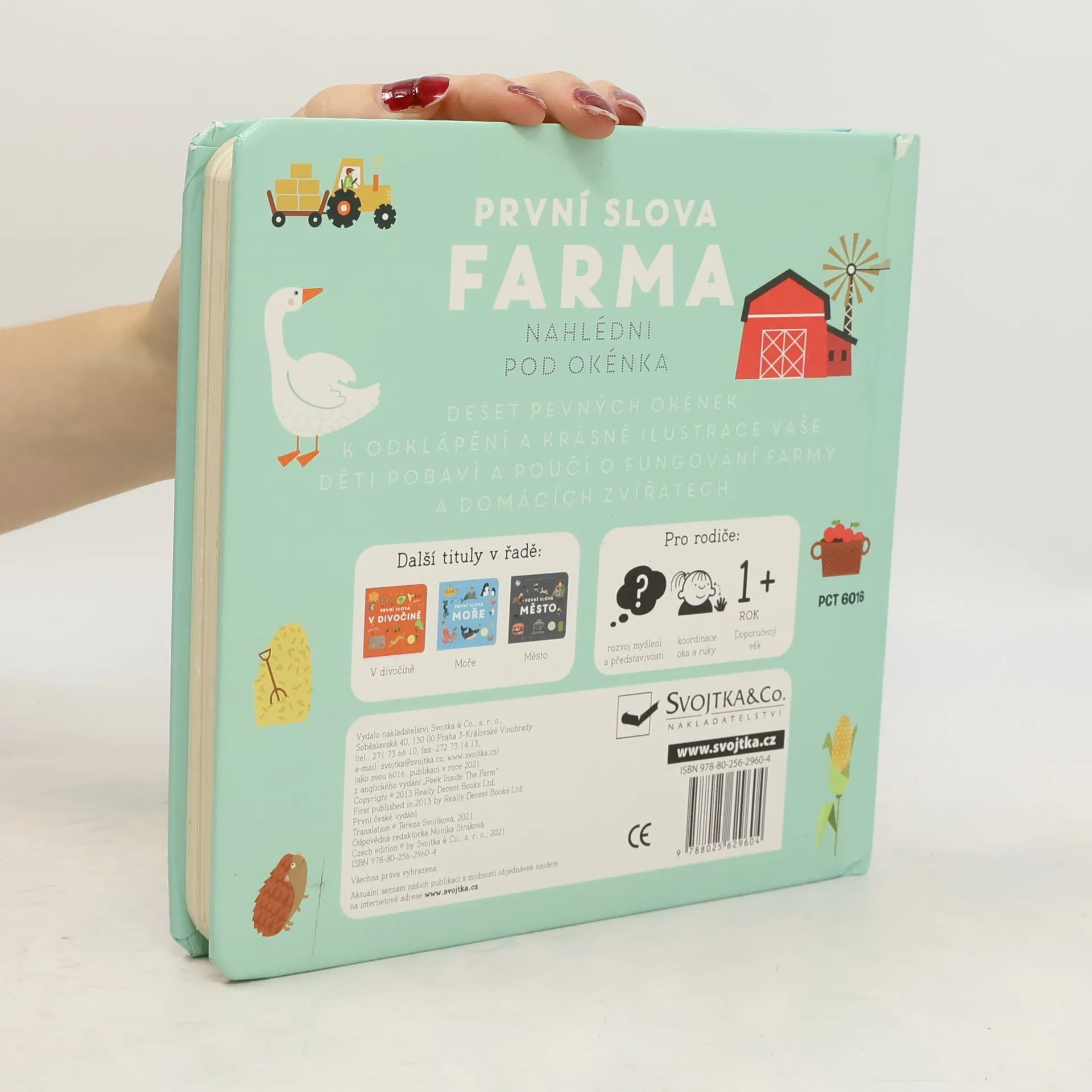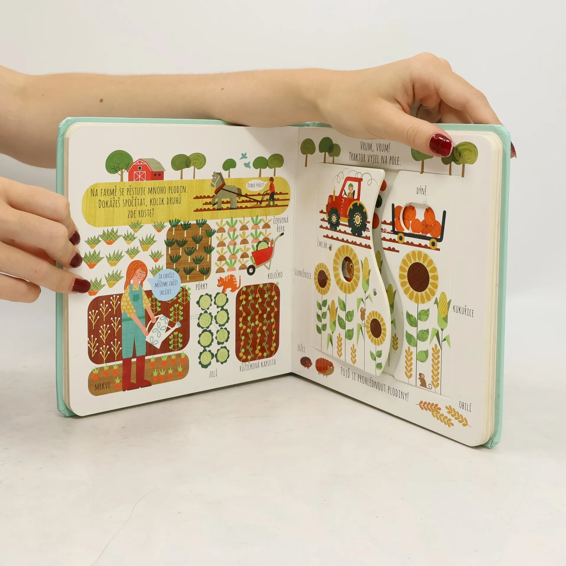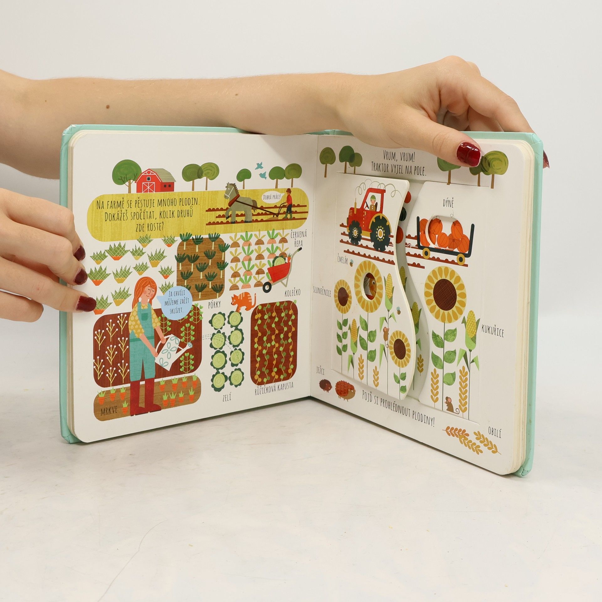 Interaktivní knížka s tuhými listy seznamuje děti s domácí zvířaty a prostředím, ve kterém žijí. Obrázky doplňují krátké popisky.