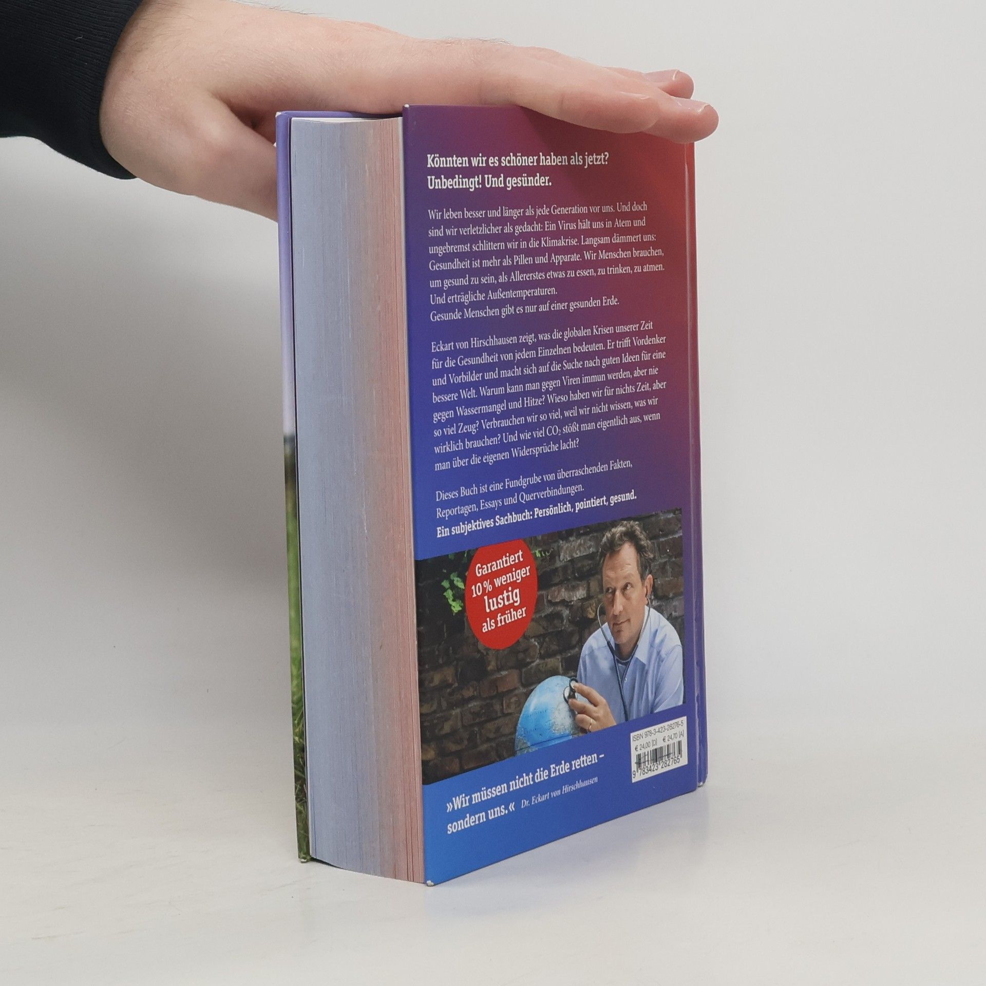 Die großen Themen unserer Zeit in überraschenden Zusammenhängen Könnten wir es schöner haben als jetzt? Unbedingt! Und gesünder. Wir leben besser und länger als jede Generation vor uns. Und doch sind wir verletzlicher als gedacht: Ein Virus hält uns in Atem und ungebremst schlittern wir in die Klimakrise. Langsam dämmert uns: Gesundheit ist mehr als Pillen und Apparate. Wir Menschen brauchen, um gesund zu sein, als Allererstes etwas zu essen, zu trinken, zu atmen. Und erträgliche Außentemperaturen. Gesunde Menschen gibt es nur auf einer gesunden Erde. Eckart von Hirschhausen zeigt, was die globalen Krisen unserer Zeit für die Gesundheit von jedem Einzelnen von uns bedeuten. Er trifft Vordenker und Vorbilder und macht sich auf die Suche nach guten Ideen für eine bessere Welt. Warum kann man gegen Viren immun werden, aber nie gegen Wassermangel und Hitze? Wieso haben wir für nichts Zeit, aber so viel Zeug? Verbrauchen wir so viel, weil wir nicht wissen, was wir wirklich brauchen? Und wie viel CO2 stößt man eigentlich aus, wenn man über die eigenen Widersprüche lacht? Dieses Buch ist eine Fundgrube von überraschenden Fakten, Reportagen, Essays und Querverbindungen. Ein subjektives Sachbuch: persönlich, pointiert, gesund.