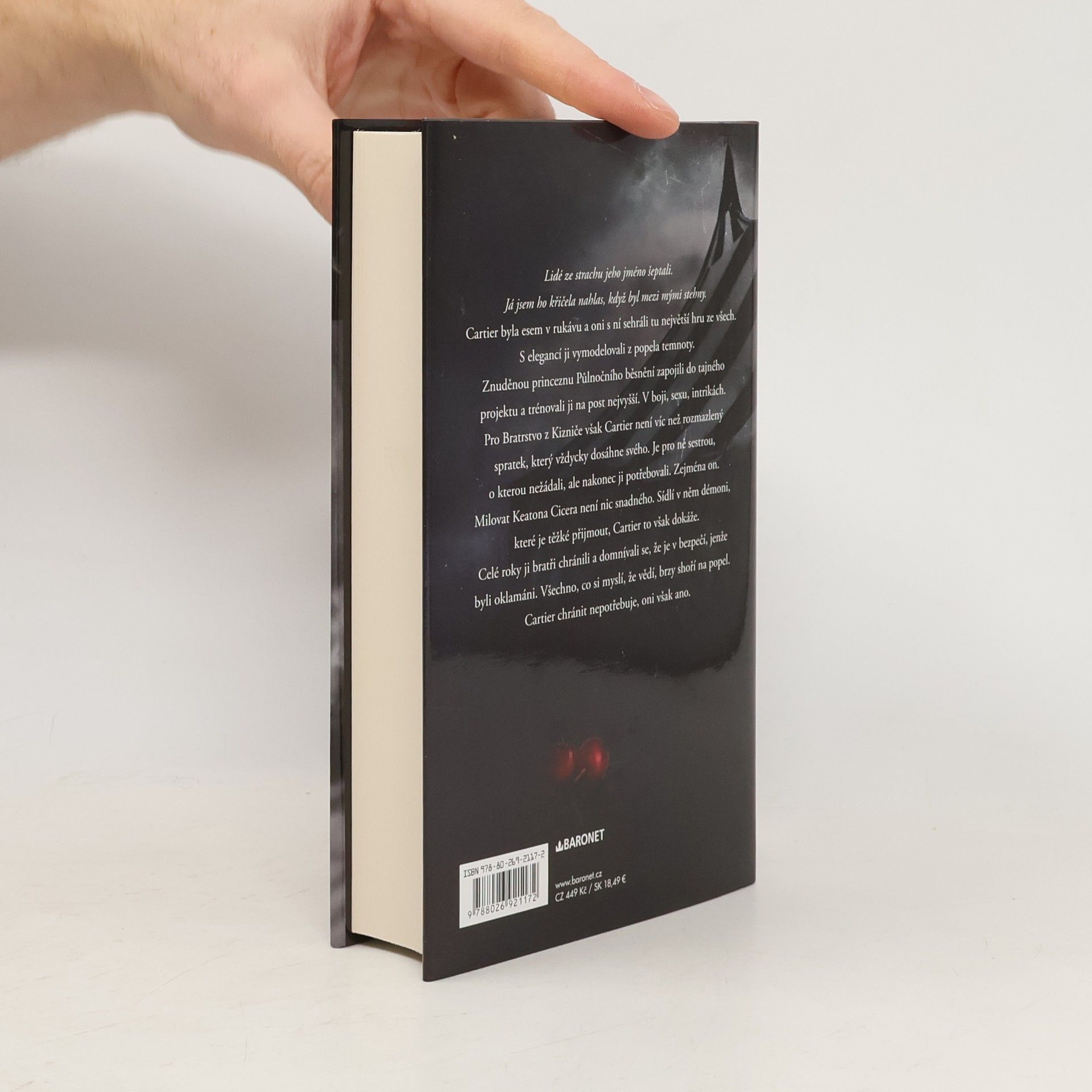 Lidé ze strachu jeho jméno šeptali. Já jsem ho křičela nahlas, když byl mezi mými stehny.Cartier byla esem v rukávu a oni s ní sehráli tu největší hru ze všech. S elegancí ji vymodelovali z popela temnoty. Znuděnou princeznu Půlnočního běsnění zapojili do tajného projektu a trénovali ji na post nejvyšší. V boji, sexu, intrikách.Pro Bratrstvo z Kizniče však Cartier není víc než rozmazlený spratek, který vždycky dosáhne svého. Je pro nich sestrou, o kterou nežádali, ale nakonec ji potřebovali. Zejména on. Milovat Keatona Cicera není nic snadného. Sídlí v něm démoni, které je těžké přijmout.Celé roky ji bratři chránili a domnívali se, že je v bezpečí, jenže byli oklamáni. Všechno, co si myslí, že vědí, brzy shoří na popel. Cartier chránit nepotřebuje, oni však ano.
