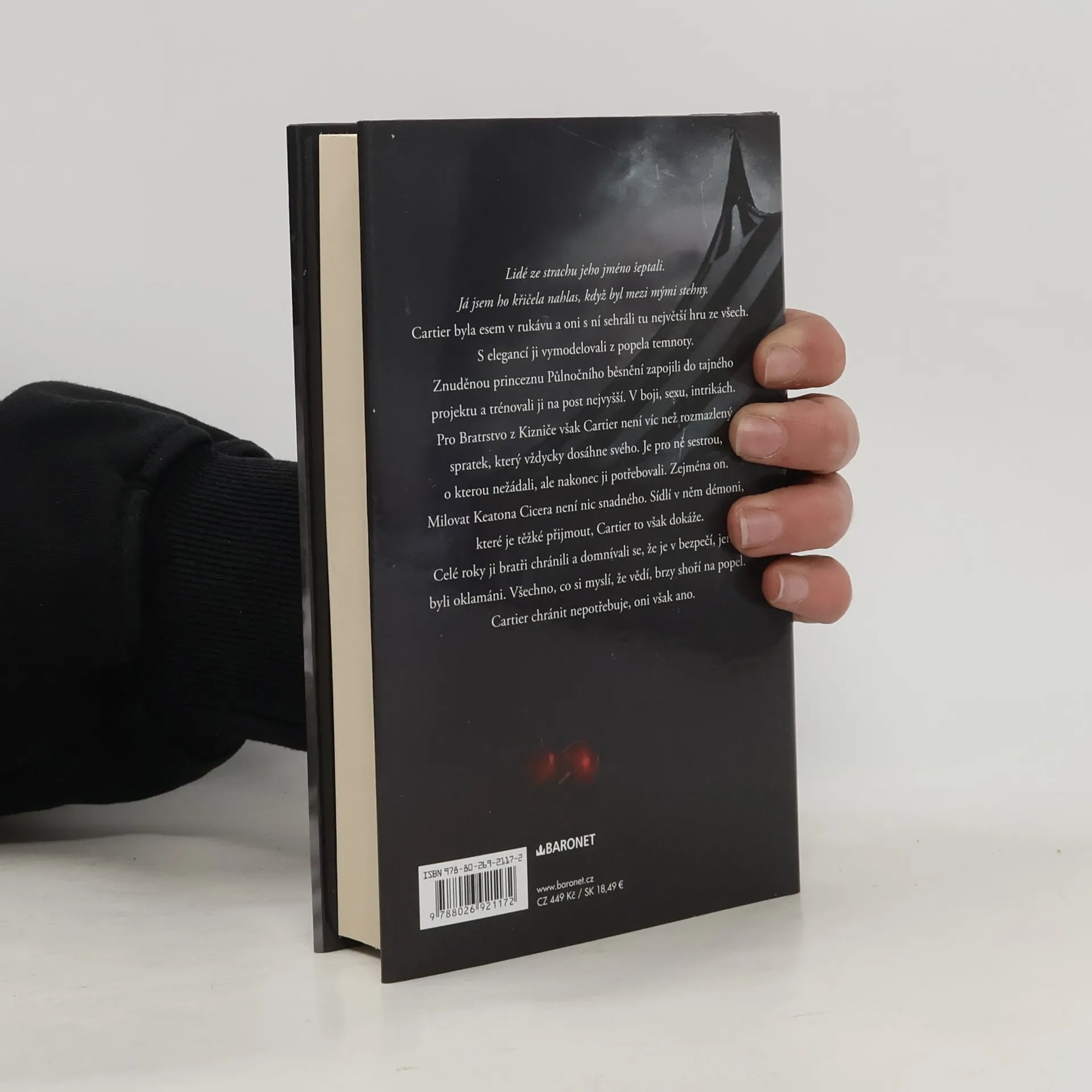 Lidé ze strachu jeho jméno šeptali. Já jsem ho křičela nahlas, když byl mezi mými stehny.Cartier byla esem v rukávu a oni s ní sehráli tu největší hru ze všech. S elegancí ji vymodelovali z popela temnoty. Znuděnou princeznu Půlnočního běsnění zapojili do tajného projektu a trénovali ji na post nejvyšší. V boji, sexu, intrikách.Pro Bratrstvo z Kizniče však Cartier není víc než rozmazlený spratek, který vždycky dosáhne svého. Je pro nich sestrou, o kterou nežádali, ale nakonec ji potřebovali. Zejména on. Milovat Keatona Cicera není nic snadného. Sídlí v něm démoni, které je těžké přijmout.Celé roky ji bratři chránili a domnívali se, že je v bezpečí, jenže byli oklamáni. Všechno, co si myslí, že vědí, brzy shoří na popel. Cartier chránit nepotřebuje, oni však ano.