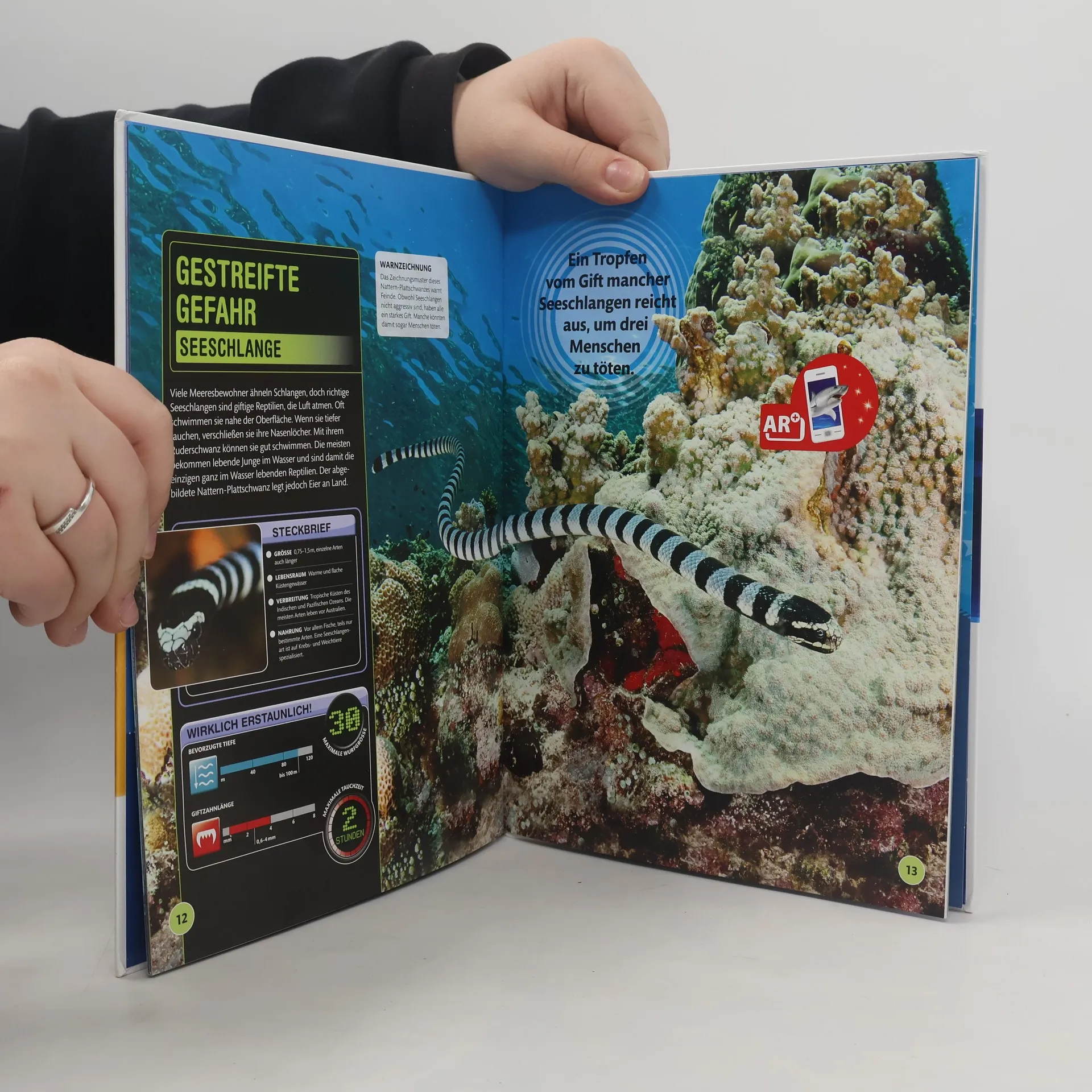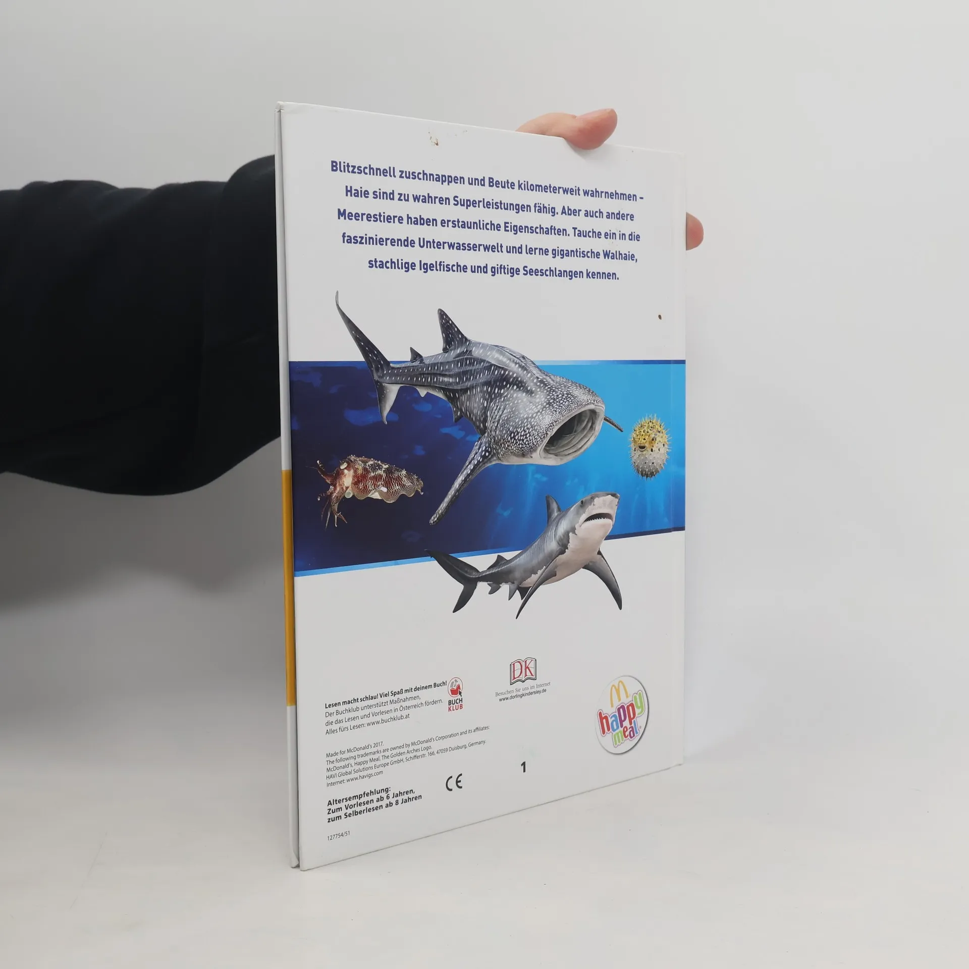 Hai-lights aus der Tiefe! Blitzschnell zuschnappen, im trüben Wasser sehen und Beute kilometerweit wahrnehmen – Haie sind zu wahren Superleistungen fähig. Aber auch andere Meeresbewohner stehen ihnen in nichts nach. Dieses Buch verrät alles über die beeindruckendsten Meeresbewohner: vom größten aller Fische, dem Walhai, bis hin zum Tiefsee-Anglerfisch, der eine leuchtende Laterne auf dem Kopf trägt. Im doppelseitigen Porträt werden über 80 verschiedene Tiere der Ozeane mit verblüffenden Eigenschaften und Verhaltensweisen vorgestellt. Steckbriefe geben einen kurzen Überblick über Größe, Lebensraum, Verbreitung und Nahrung. Die Rubrik "Wirklich erstaunlich!" stellt interessante Daten grafisch dar. Eindrucksvolle, große Farbfotos setzen die Meeresbewohner perfekt in Szene. Spektakuläre 3D-Grafiken enthüllen anatomische Besonderheiten und gewähren ungewöhnliche Einblicke. Dieses Buch stillt jeden Wissenshunger von Tierfans und geht vielen spannenden Geheimnissen auf den (Meeres-)Grund!