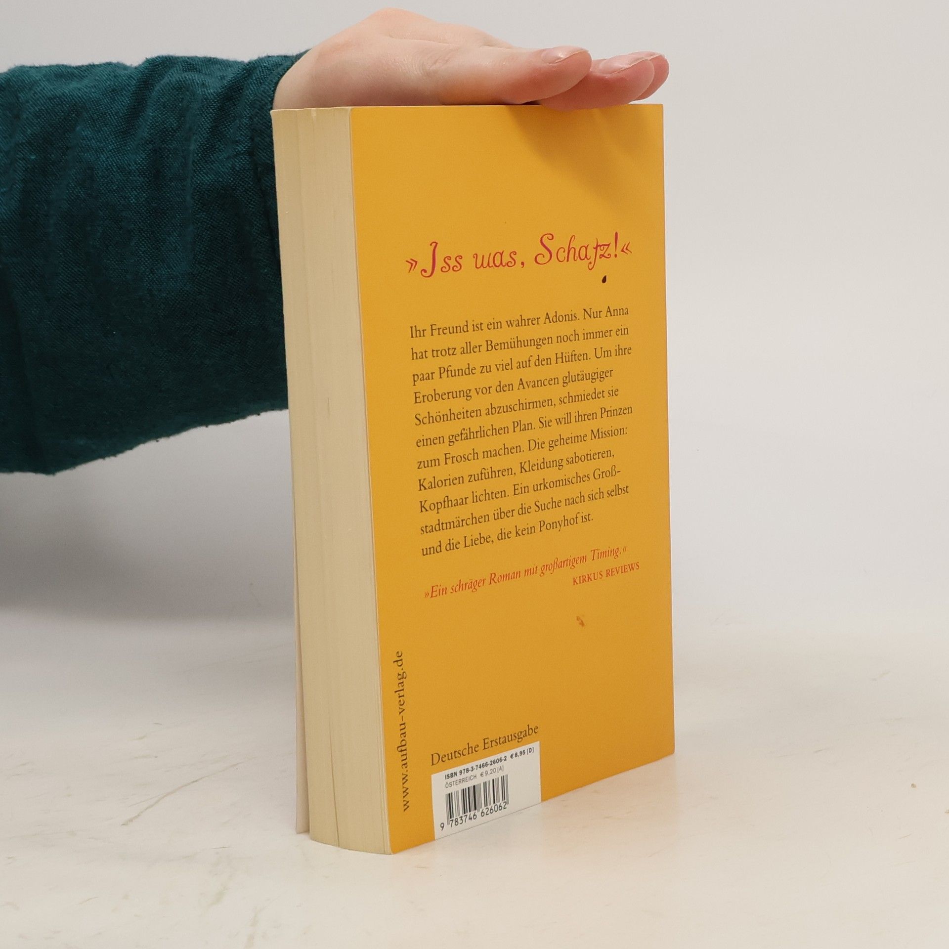 „Iss was, Schatz!“ Ihr Freund ist ein wahrer Adonis. Nur Anna hat trotz aller Bemühungen noch immer ein paar Pfunde zu viel auf den Hüften. Um ihre Eroberung vor den Avancen glutäugiger Schönheiten abzuschirmen, schmiedet sie einen gefährlichen Plan: Ihr Prinz soll zum Frosch werden. Die geheime Mission: Kalorien zuführen, Kleidung sabotieren, Kopfhaar lichten. Ein urkomisches Großstadtmärchen über die Suche nach sich selbst und die Liebe, die kein Ponyhof ist. „Ein schräger Roman mit großartigem Timing.“ Kirkus Reviews