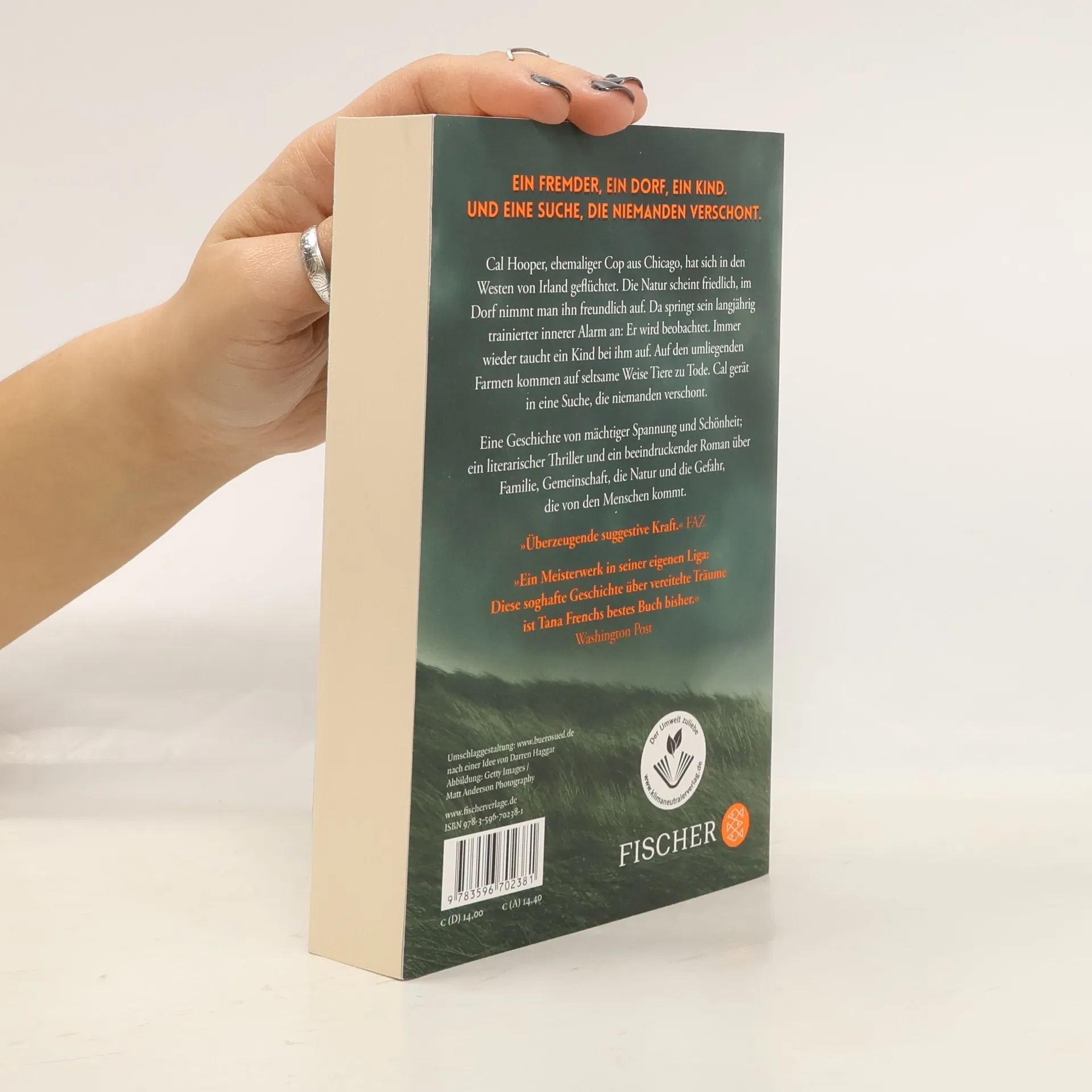 Der SPIEGEL-Bestseller jetzt im Taschenbuch »Überzeugende suggestive Kraft.« FAZ »Unwiderstehlicher Lese-Sog.« Brigitte »Durch ihren Roman ›Der Sucher‹ bin ich Fan von Tana French geworden.« Devid Striesow Cal Hooper, ehemaliger Cop aus Chicago, hat sich in den Westen von Irland geflüchtet. Die Natur scheint friedlich, im Dorf nimmt man ihn freundlich auf. Da springt sein langjährig trainierter innerer Alarm an: Er wird beobachtet. Immer wieder taucht ein Kind bei ihm auf. Auf den umliegenden Farmen kommen auf seltsame Weise Tiere zu Tode. Cal gerät in eine Suche, die niemanden verschont. Ein beeindruckender, atmosphärischer Roman über Familie, Gemeinschaft, die Natur und die Gefahr, die von den Menschen kommt. Das neue spannende Werk der renommierten Bestseller-Autorin Tana French. »Ein Meisterwerk in seiner eigenen Liga: Diese soghafte Geschichte über vereitelte Träume ist Tana Frenchs bestes Buch bisher.« Washington Post