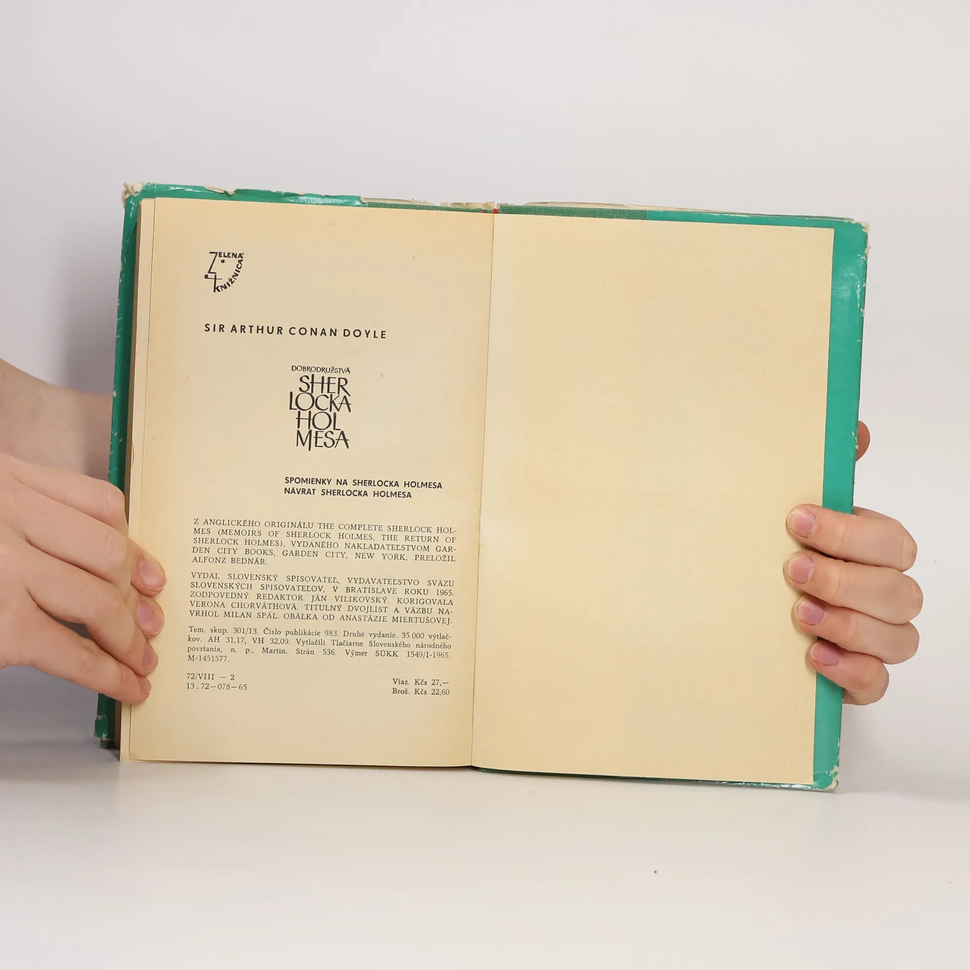 Vydané v edícii Zelená knižnica v r.1965 Štúdia v červenom, Podpis štyroch, Dobrodružstvá Sherlocka Holmesa
