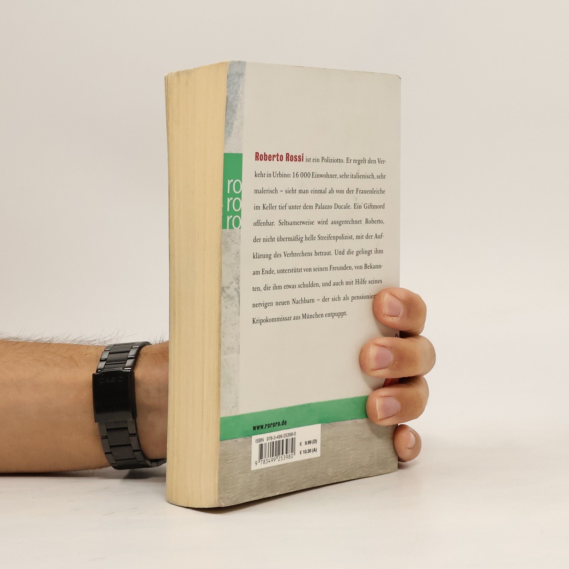Roberto Rossi ist ein Poliziotto. Er regelt den Verkehr in Urbino: 16000 Einwohner, sehr italienisch, sehr malerisch – sieht man einmal ab von der Frauenleiche im Keller tief unter dem Palazzo Ducale. Ein Giftmord offenbar. Seltsamerweise wird ausgerechnet Roberto, der nicht übermäßig helle Streifenpolizist, mit der Aufklärung des Verbrechens betraut. Und die gelingt ihm am Ende, unterstützt von seinen Freunden, von Bekannten, die ihm etwas schulden, und auch mit Hilfe seines nervigen neuen Nachbarn – der sich als pensionierter Kripokommissar aus München entpuppt.