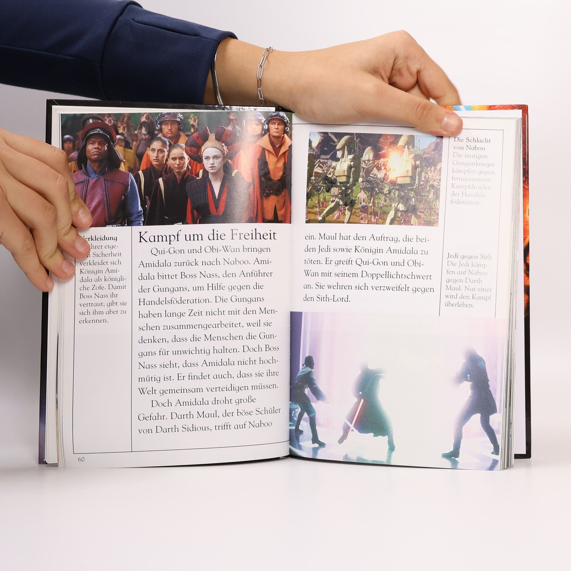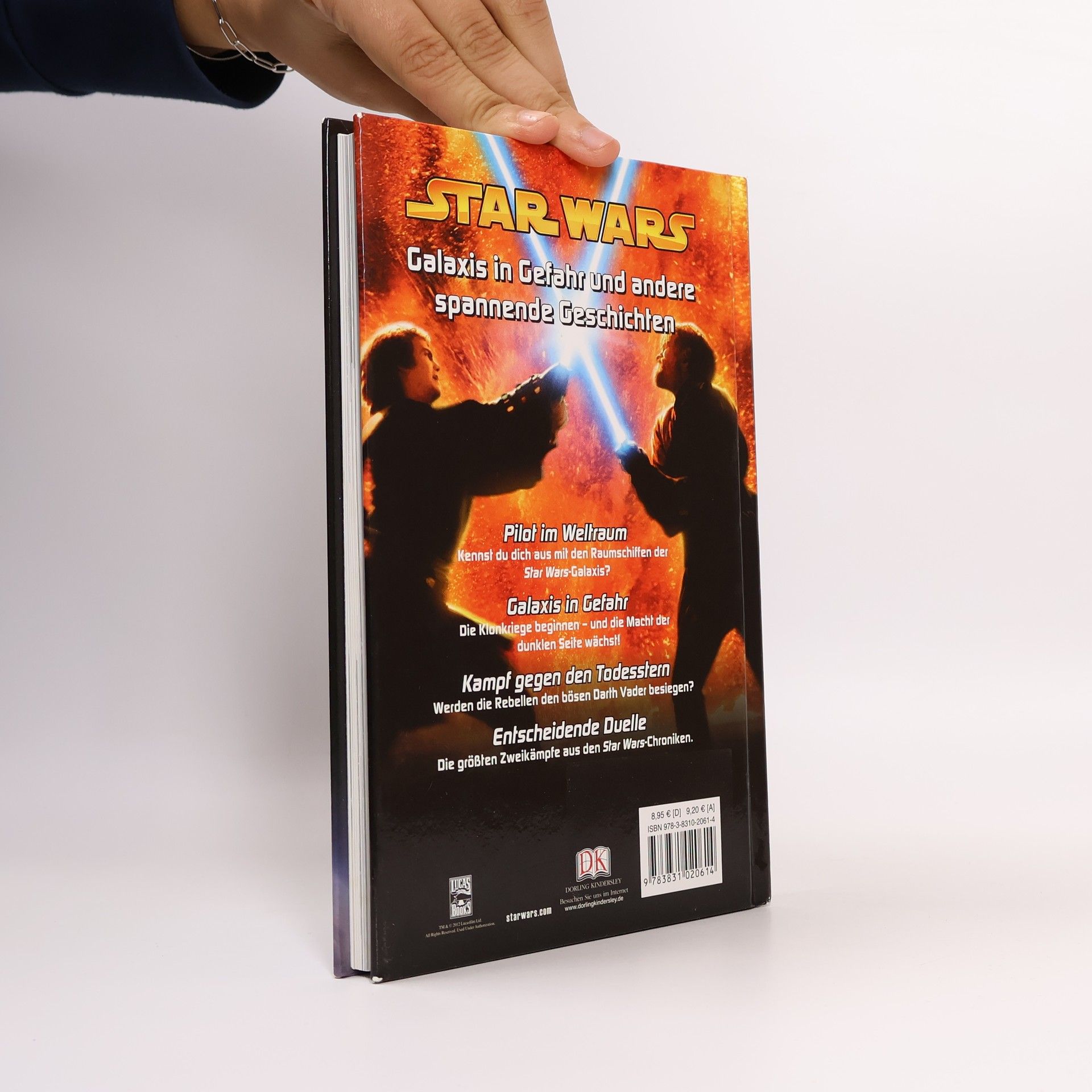 Kleine Star Wars-Fans aufgepasst! Dieses Buch beinhaltet vier spannende Star Wars Geschichten: In "Pilot im Weltraum" dreht sich alles um die Raumschiffe der Star Wars-Galaxis. "Galaxis in Gefahr" beschreibt, wie die Klonkriege beginnen und die Macht der dunklen Seite wächst. In "Kampf gegen den Todesstern" kämpfen die Rebellen gegen Darth Vader? Und in "Entscheidende Duelle" können junge Star Wars-Fans die größten Zweikämpfe aus den Star Wars-Chroniken erleben und erlesen.#x15;Die Figuren und Handlungen der Geschichten sind aus den Star Wars-Episoden I-VI bekannt. Über 200 Original-Filmbilder und leicht verständliche Sätze in großer Schrift machen das Buch lebendig und zu einem idealen Einsteigertitel für Erstleser. Info-Boxen liefern interessante Erklärungen und Details zu Figuren, Gefährten, Schauplätzen und Ereignissen. Star Wars-Fans werden begeistert sein, denn auch die Fortsetzung des Bestsellers Star Wars-Geschichten der Jedi und Sith ist perfekt auf die Bedürfnisse von Erstlesern abgestimmt. Ab 7 Jahren