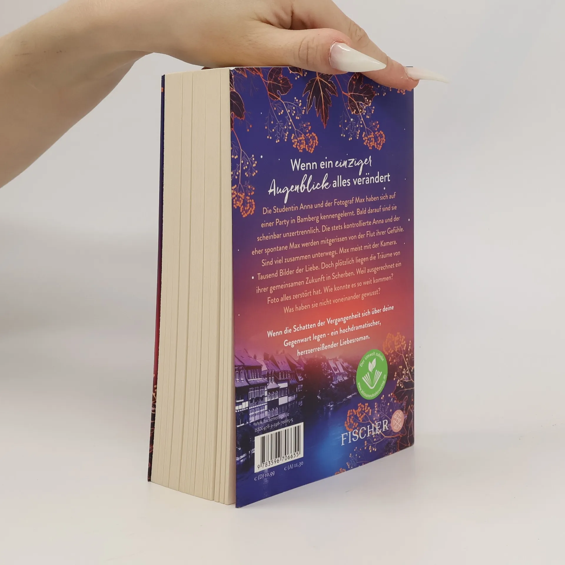 Wenn ein einziger Augenblick alles für immer verändert - der intensivste Liebesroman dieser Saison! Die BWL-Studentin Anna und der Fotograf Max haben sich nicht gesucht, aber gefunden. Bei einem »Wahrheit oder Pflicht«-Spiel auf einer Party in Bamberg. Bald darauf sind sie scheinbar unzertrennlich. Die stets kontrollierte Anna und der eher spontane Max werden mitgerissen von der Flut ihrer Gefühle. Sind viel zusammen unterwegs. Max meist mit der Kamera. Tausend Bilder der Liebe. Doch plötzlich liegen die Träume von ihrer gemeinsamen Zukunft in Scherben, und Max steht allein im Herbstwind auf der Brücke über der Regnitz. Weil ausgerechnet ein Foto alles zerstört hat. Wenn die Schatten der Vergangenheit sich über deine Gegenwart legen - ein hochdramatischer, herzzerreißender Liebesroman