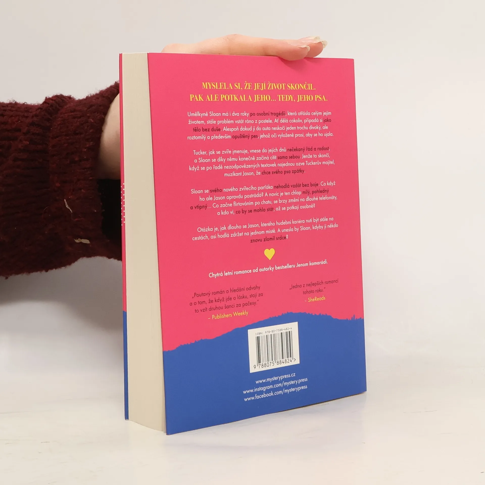 Umělkyně Sloan má i dva roky po osobní tragédii, která otřásla celým jejím životem, stále problém vstát ráno z postele. Ať dělá cokoliv, připadá si jako tělo bez duše. Alespoň dokud jí do auta neskočí jeden trochu divoký, ale roztomilý a především opuštěný pes, jehož oči vyloženě prosí, aby se ho ujala.Tucker, jak se zvíře jmenuje, vnese do jejích dnů nečekaný řád a radost, a Sloan se díky němu konečně začíná cítit sama sebou. Jenže to skončí, když se po řadě nezodpovězených textovek najednou ozve Tuckerův majitel, muzikant Jason, že chce svého psa zpátky.Sloan se svého nového zvířecího parťáka nehodlá vzdát bez boje. Co když ho ale Jason opravdu postrádá? A navíc je ten chlap milý, pohledný a vtipný… Co začne flirtováním po chatu, se brzy změní na dlouhé telefonáty, a kdo ví, co by se mohlo stát, až se potkají osobně?Otázka je, jak dlouho se Jason, kterého hudební kariéra nutí být stále na cestách, asi hodlá zdržet na jednom místě. A unesla by Sloan, kdyby jí někdo znovu zlomil srdce?