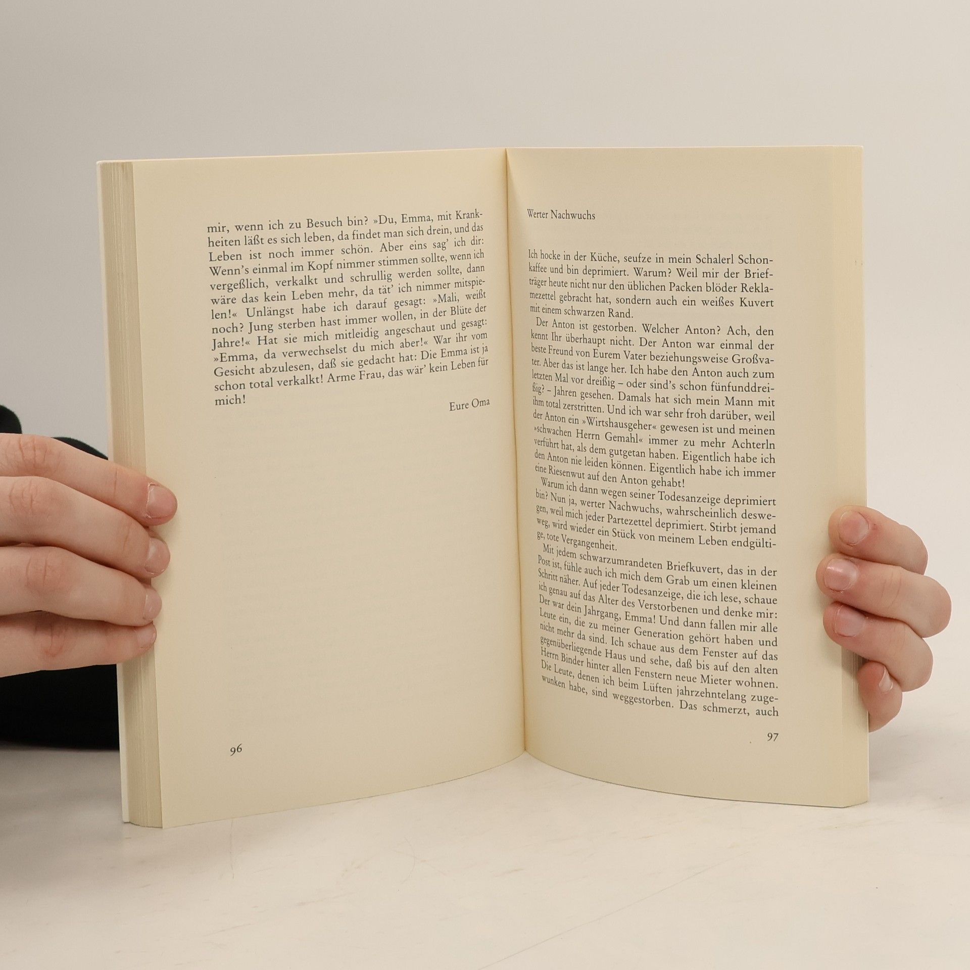 Immer um Verständnis zwischen den Generationen werbend, schreibt sich Oma Emm K. nicht ohne Humor ihren Kummer von der Seele