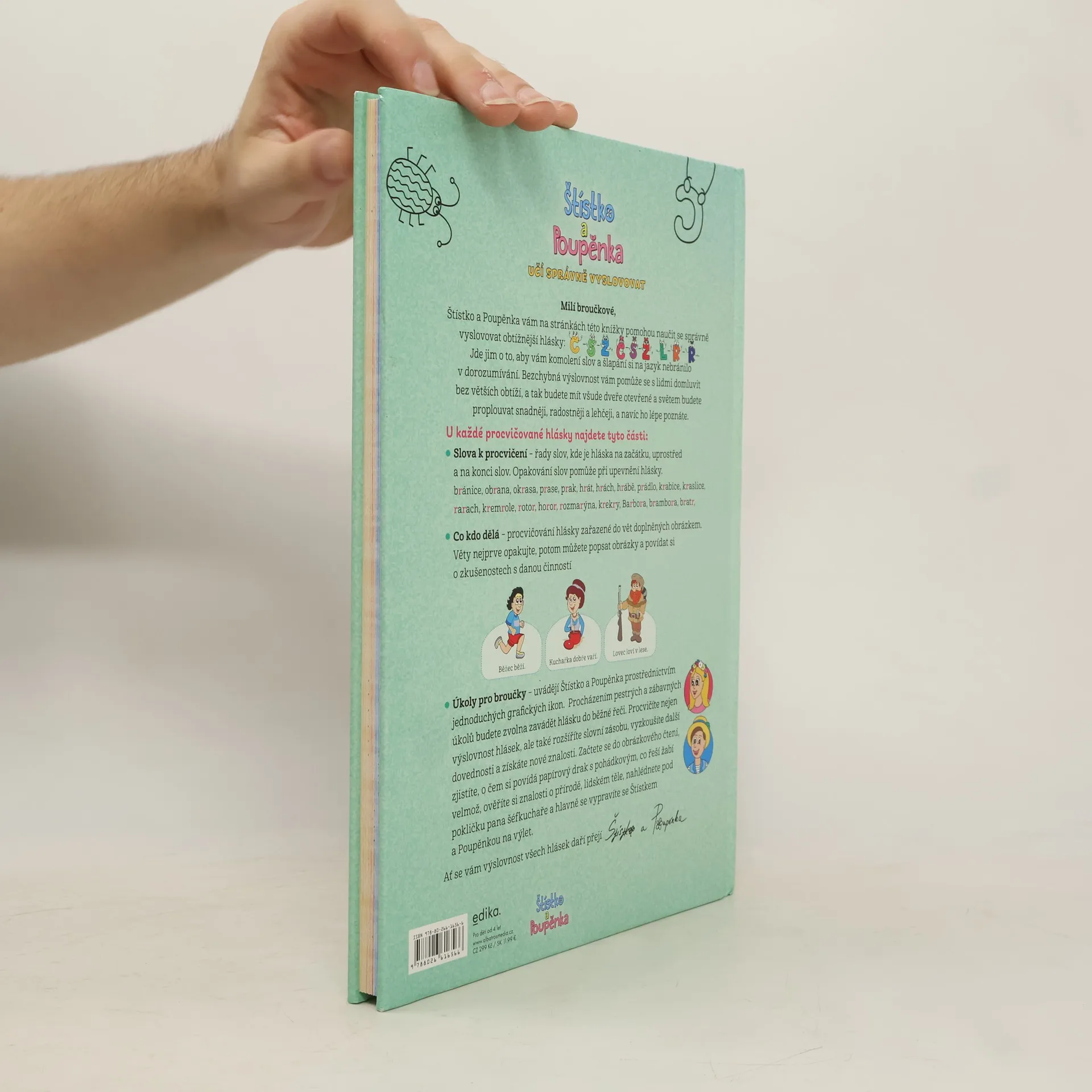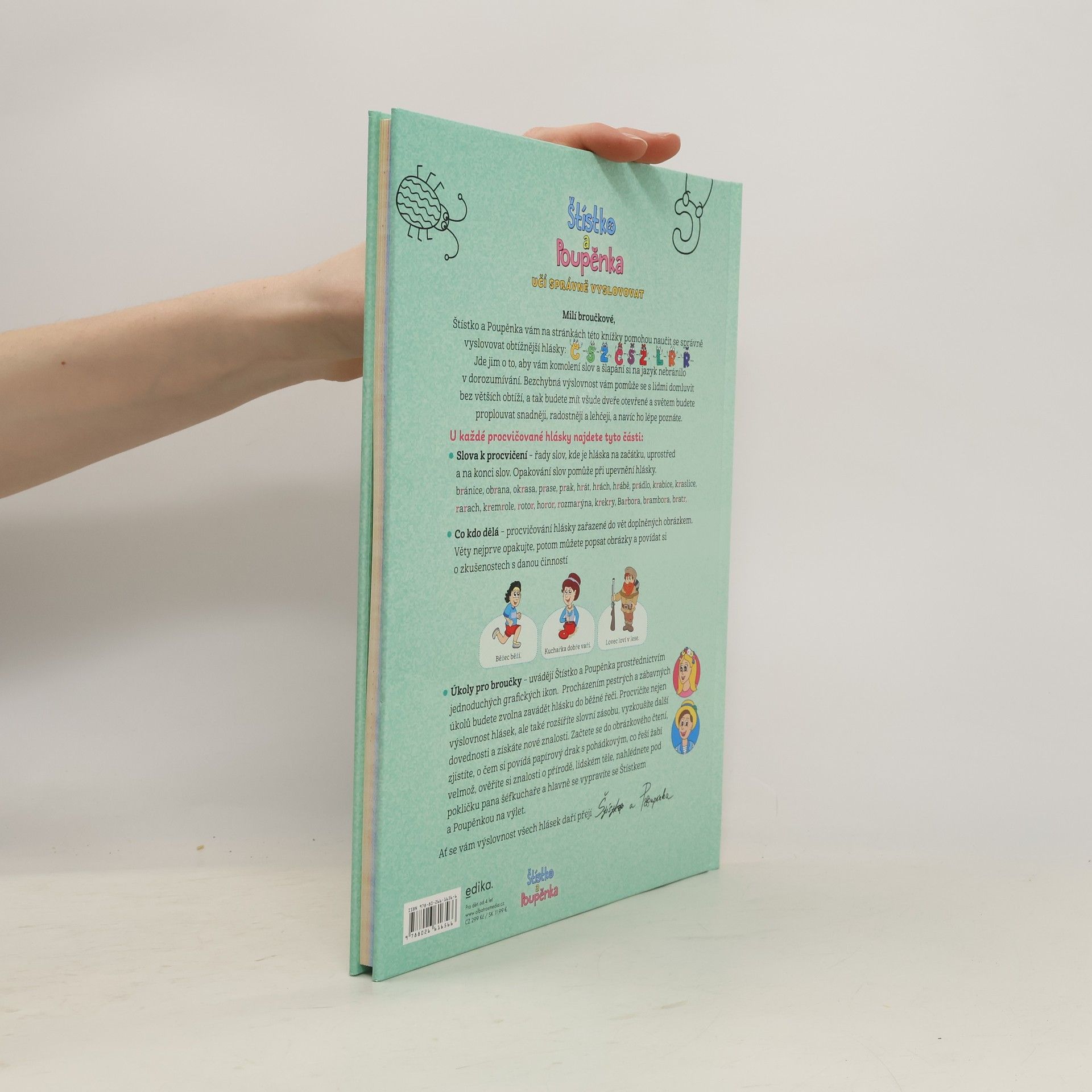 Ahoj broučkové! Naučte se s námi vyslovovat všechny hlásky! Může být procvičování výslovnosti zábava? Může být procvičování výslovnosti zábava? Štístko a Poupěnka vám dokážou, že ano. Spolu s nimi si předškoláci i mladší školáci přečtou pohádku o dracích, naplánují výlet, popovídají si o vaření a zažijí ještě mnohem víc. V jednotlivých kapitolách si posvítí na problematické hlásky a vyzkouší si jejich výslovnost ve slovech i větách. Od lehčích úkolů plynule přejdou k náročnějším – a přitom je s oblíbenou dvojicí čeká spousta legrace!