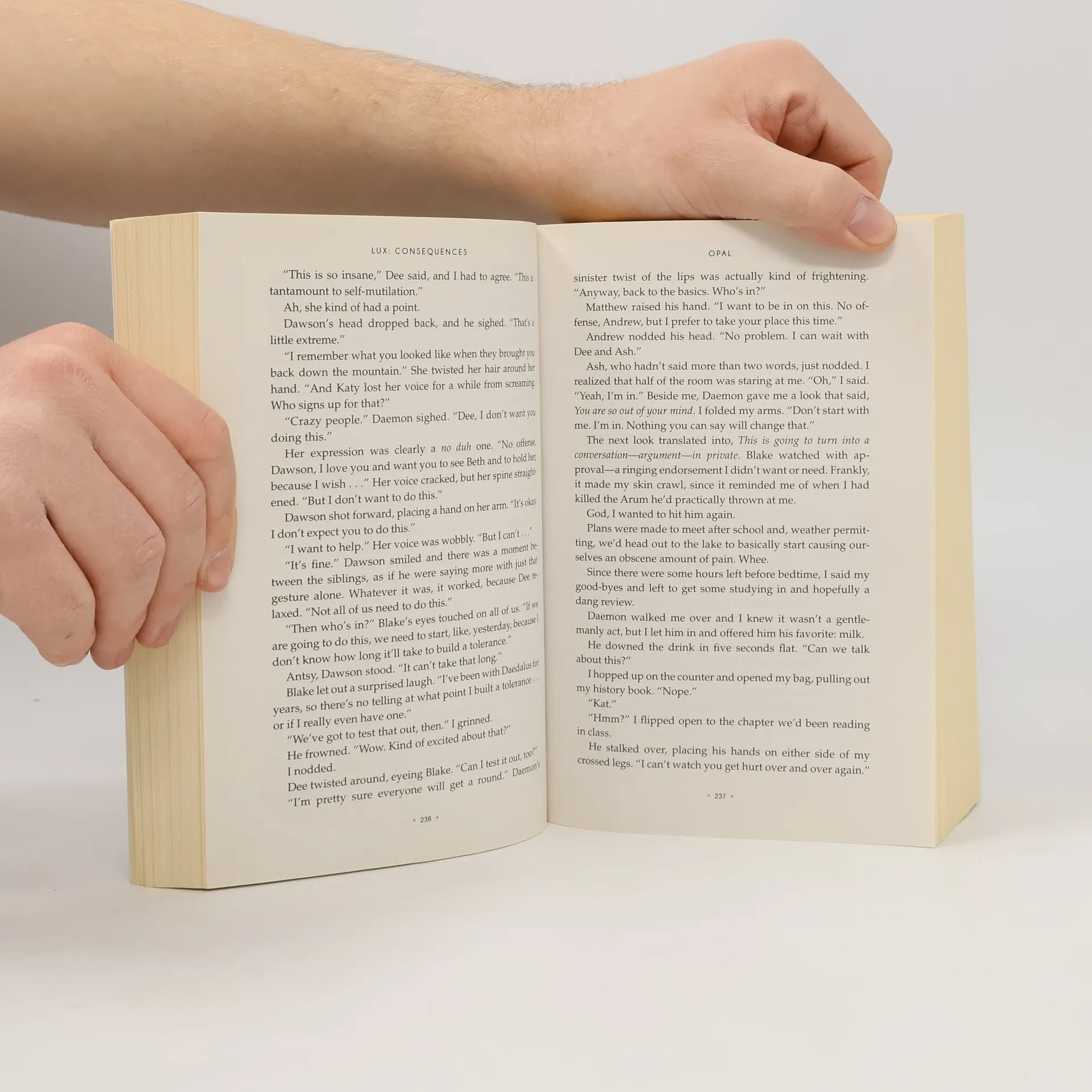 Lux: Consequences by Jennifer Armentrout: Now available together for the first time, don't miss Opal and Origin, the third and fourth books in Jennifer L. Armentrout's bestselling Lux series. Also includes bonus content exclusive to the print edition! "A thrilling ride from start to finish," says RT Book Reviews. Opal After everything, I'm no longer the same Katy. I'm different...and I'm not sure what that will mean in the end. When each step we take in discovering the truth puts us in the path of the secret organization responsible for torturing and testing hybrids, the more I realize there is no end to what I'm capable of. The death of someone close still lingers, help comes from the most unlikely source, and friends will become the deadliest of enemies, but we won't turn back. Even if the outcome will shatter our worlds forever. Origin Daemon will do anything to get Katy back. After the successful but disastrous raid on Mount Weather, he's facing the impossible. Katy is gone. Taken. Everything becomes about finding her. But the most dangerous foe has been there all along, and when the truths are exposed and the lies come crumbling down, which side will Daemon and Katy be standing on? And will they even be together? Want to read the LUX series on your ereader? Each book is sold individually in e-format: #1: Obsidian #2: Onyx #3: Opal #4: Origin #5: Opposition Prequel novella: Shadows