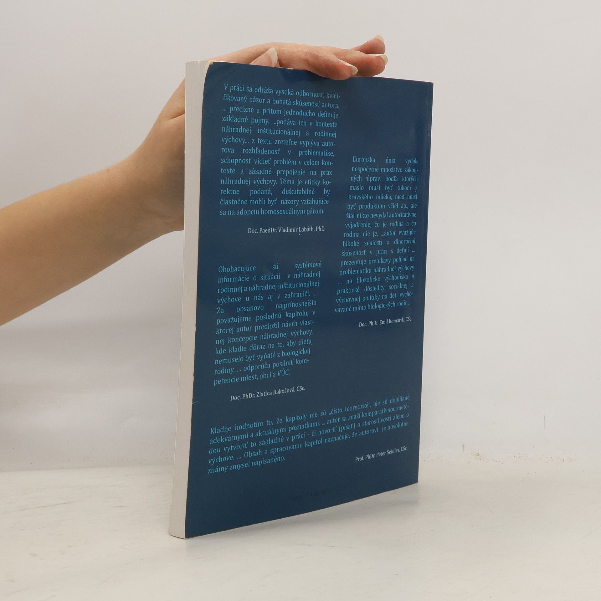 Autor využíva hlboké znalosti a dlhoročnú skúsenosť v práci s deťmi a prezentuje prenikavý pohľad na problematiku náhradnej výchovy i na praktické dôsledky sociálnej a výchovnej politiky na deti vychovávané mimo biologických rodín.