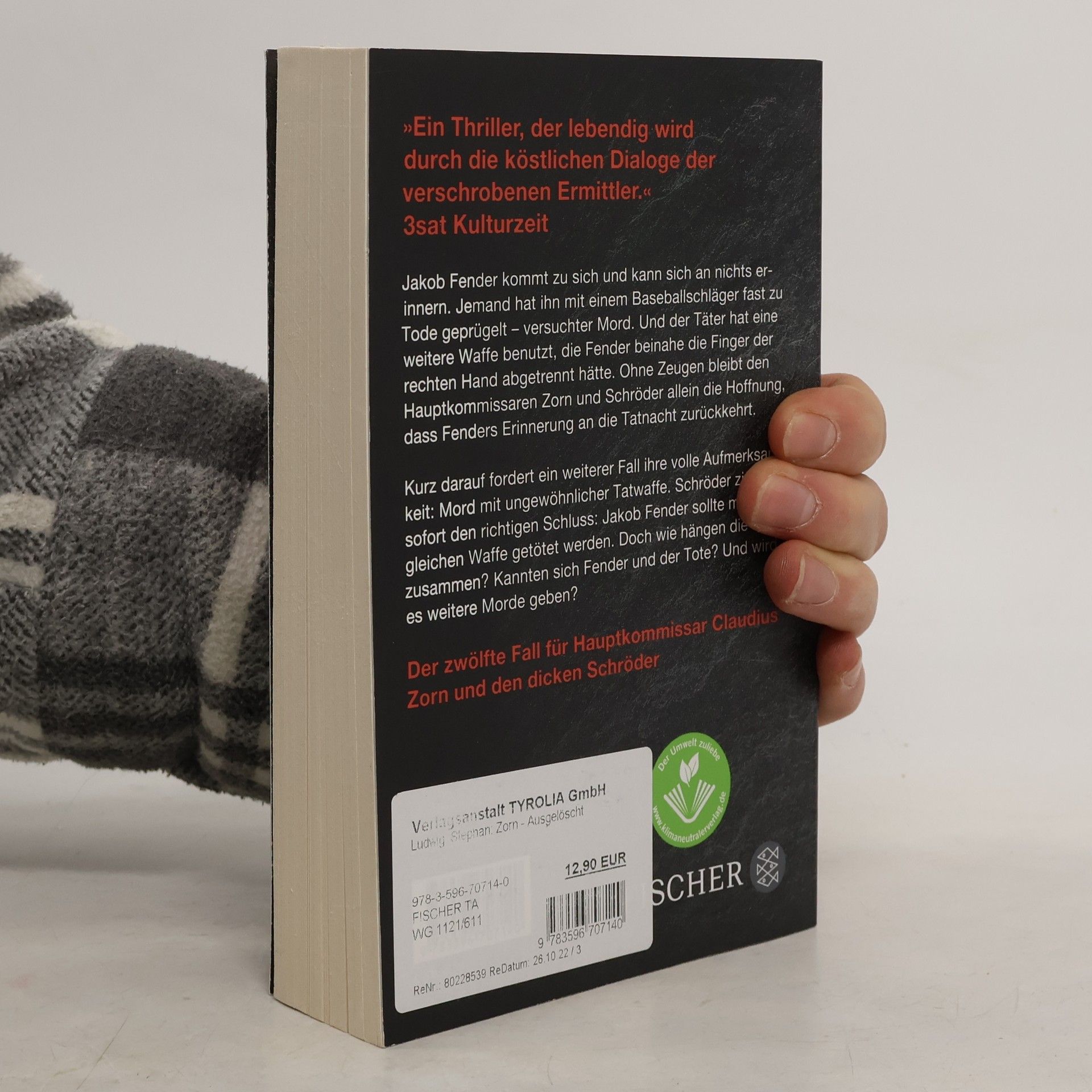 Hauptkommissar Claudius Zorn und der dicke Schröder blicken in menschliche Abgründe – der zwölfte Band der Kult-Thriller-Serie von Bestsellerautor Stephan Ludwig Jakob Fender kommt zu sich und kann sich an nichts erinnern. Nicht mal an seinen eigenen Namen. Jemand hat ihn mit einem Baseballschläger fast zu Tode geprügelt – versuchter Mord. Zur Tat gibt es kaum Anhaltspunkte, nur dass der Täter noch eine weitere Waffe verwendet hat, die Fender beinahe die Finger der rechten Hand abgetrennt hätte. Ohne Zeugen bleibt den Hauptkommissaren Zorn und Schröder allein die Hoffnung, dass Fenders Erinnerung an die Tatnacht irgendwann zurückkehrt. Kurz darauf fordert ein weiterer Fall die volle Aufmerksamkeit der beiden Kommissare: Von einer Brücke hängt ein Toter, auch hier liegt eindeutig ein Gewaltverbrechen vor. Mit einer ungewöhnlichen Tatwaffe.  Schröder zieht sofort den richtigen Schluss: Jakob Fender sollte mit der gleichen Waffe getötet werden. Doch wo ist der Zusammenhang? Kannten sich Fender und der Tote? Und wird es weitere Morde geben? »Ein Thriller, der lebendig wird durch die köstlichen Dialoge der verschrobenen Ermittler.« 3sat Kulturzeit