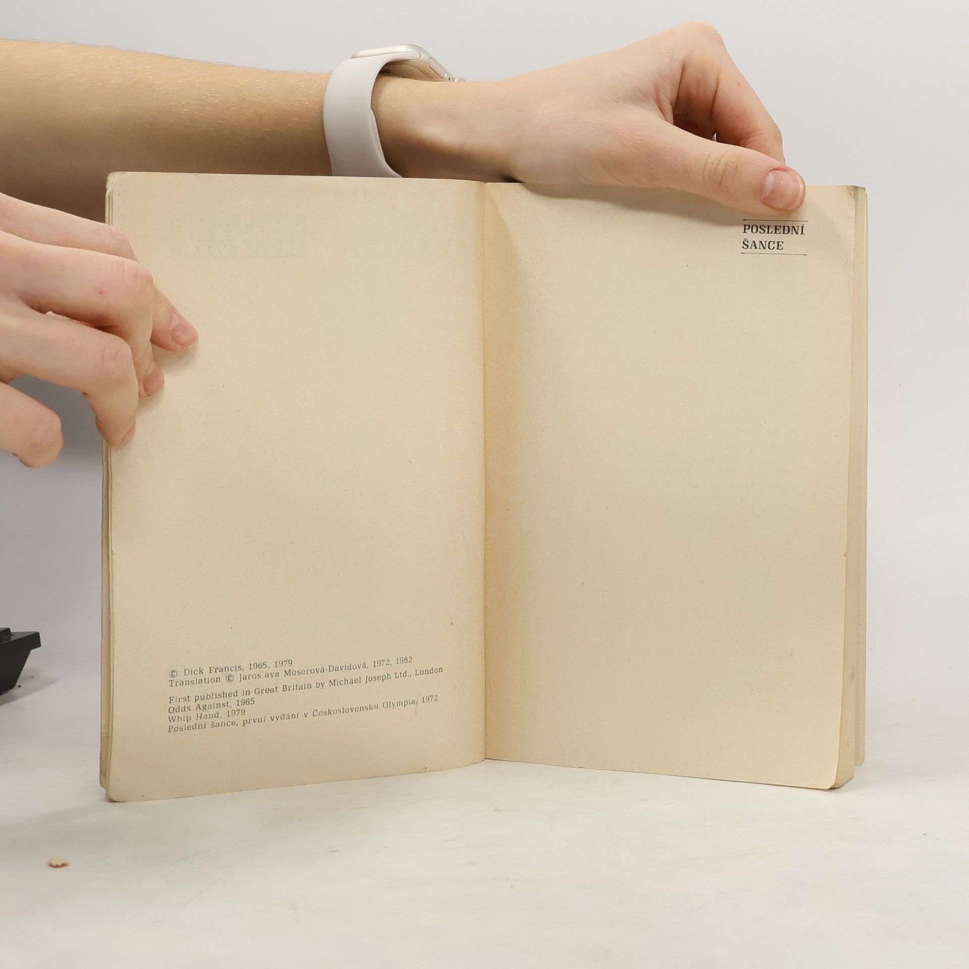 První dva příběhy se Sidem Halleyem. *** POSLEDNÍ ŠANCE: Bývalý šampion Sid Halley je zaměstnán jako poradce dostihového oddělení soukromé detektivní kanceláře Radnor a spol. Dosud se nevzpamatoval ze ztroskotaného manželství, ani z konce své jezdecké kariéry kvůli ruce zmrzačené připádu. Aby nebylo všemu konec, je postřelen. Když nejvíc pochybuje o smyslu svého života, rozhodne se ho jeho bývalý tchán vyburcovat a svěří se mu s problémem, který Sida zaujme. Kdosi totiž systematicky likviduje dostihová závodiště. Sid začne shromažďovat první důkazy a hledat odpovědi na otázky kdo, proč a jak. Z problému je brzy skutečný případ, při jehož vyšetřování se Sid střetne s mimořádnou krutostí a tvrdě zaplatí za poznání, že jeho nové povolání je možná nebezpečnější než jezdit překážkové dostihy. Jeho protivníkem je totiž podvodník velkého formátu, jehož pravé jméno je na seznamu Interpolu. BIČ: Hlavní postavou detektivního románu je bývalý žokej Sid Halley. Po úrazu ruky musel zanechat závodění a nový smysl života našel jako soukromý detektiv. Stále se pohybuje především v prostředí milovaných dostihů. Řeší nezákonné spekulace s akciemi dostihových závodišť, likvidaci nejlepších závodních koní, úplatkářství. Oporou je mu jeho přítel Chic Barnes, učitel džuda. Jako úspěšný tandem společně objasňují případy, jež se podivuhodně prolínají. Nebezpečná pátraní je přivádějí do nečekaných situací, které vyústí v bezprostřední ohrožení života.