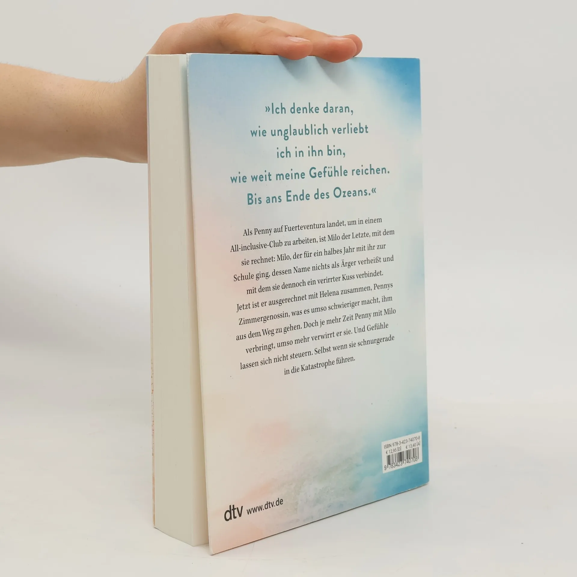 Meer und Herzen: aufgewühlt Als Penny auf Fuerteventura landet, um in einem All-inclusive-Club zu arbeiten, ist Milo der Letzte, mit dem sie rechnet. Milo, der kurz mit ihr auf der Schule war, dessen Name nichts als Ärger verhieß und mit dem sie ein verirrter Kuss verbindet. Jetzt ist ausgerechnet die fröhliche Helena, Pennys Zimmergenossin, mit Milo zusammen und Penny kann ihm kaum aus dem Weg gehen. Aber da ist noch immer die Erinnerung an diesen Kuss. Auch Helena merkt, dass da mehr ist, und das schlechte Gewissen ihr gegenüber droht Penny zu ersticken. Doch Gefühle lassen sich nicht steuern. Selbst wenn sie schnurgerade in die Katastrophe führen. Folgende weitere tolle Romance-Titel sind von Lea Coplin bei dtv erschienen: Aus der »Nichts ist gut«-Serie: Band 1: »Nichts ist gut. Ohne dich.« Band 2: »Nichts zu verlieren. Außer uns.« Weitere Einzelbände: »Für eine Nacht sind wir unendlich«