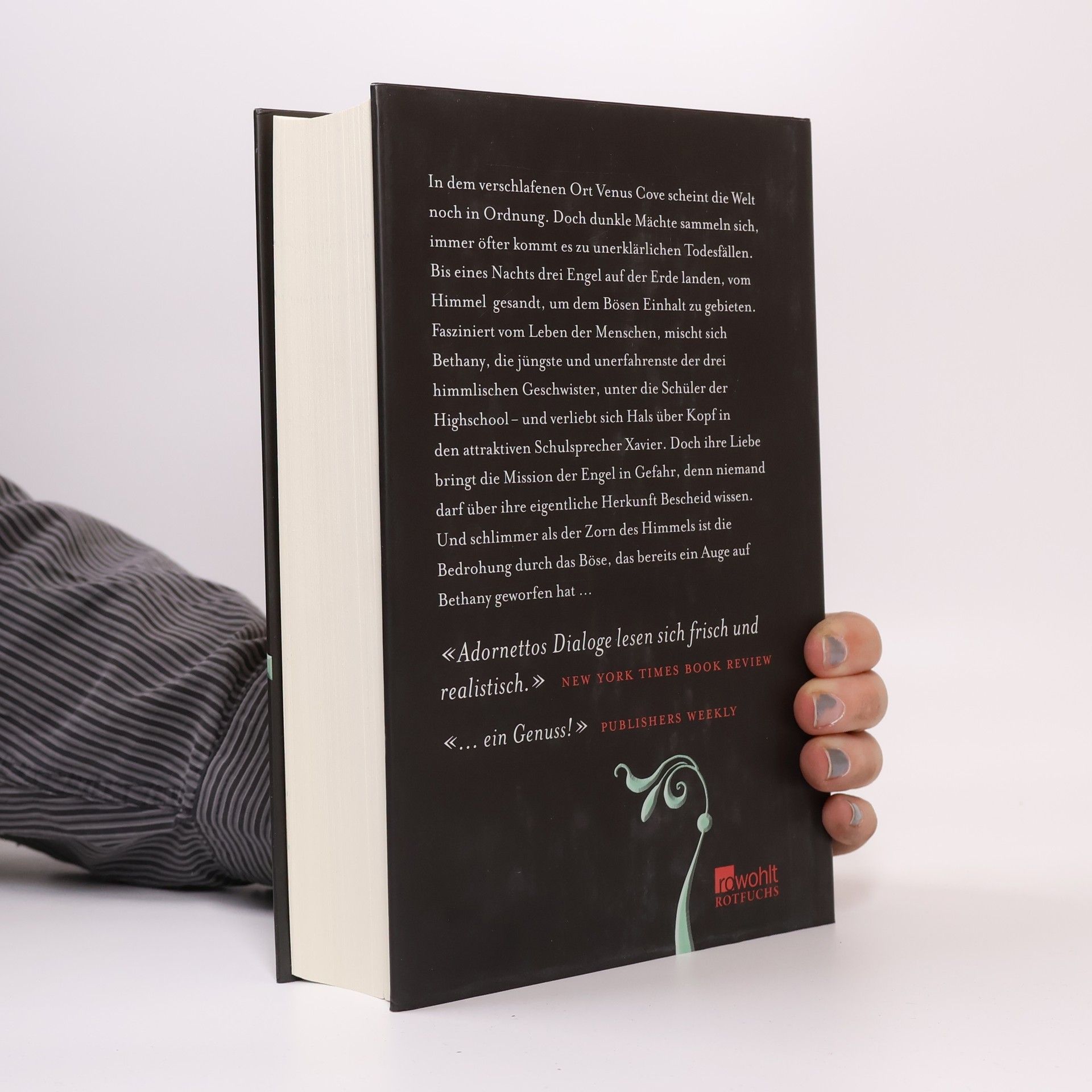 In dem verschlafenen Ort Venus Cove scheint die Welt noch in Ordnung. Doch dunkle Mächte sammeln sich, immer öfter kommt es zu unerklärlichen Todesfällen. Bis eines Nachts drei Engel auf der Erde landen, vom Himmel gesandt, um dem Bösen Einhalt zu gebieten. Fasziniert vom Leben der Menschen, mischt sich Bethany, die jüngste und unerfahrenste der drei himmlischen Geschwister, unter die Schüler der Highschool– und verliebt sich Hals über Kopf in den attraktiven Schulsprecher Xavier. Doch ihre Liebe bringt die Mission der Engel in Gefahr, denn niemand darf über ihre eigentliche Herkunft Bescheid wissen. Und schlimmer als der Zorn des Himmels ist die Bedrohung durch das Böse, das bereits ein Auge auf Bethany geworfen hat … «Adornettos Dialoge lesen sich frisch und realistisch.» new york times book review «... ein Genuss!» publishers weekly