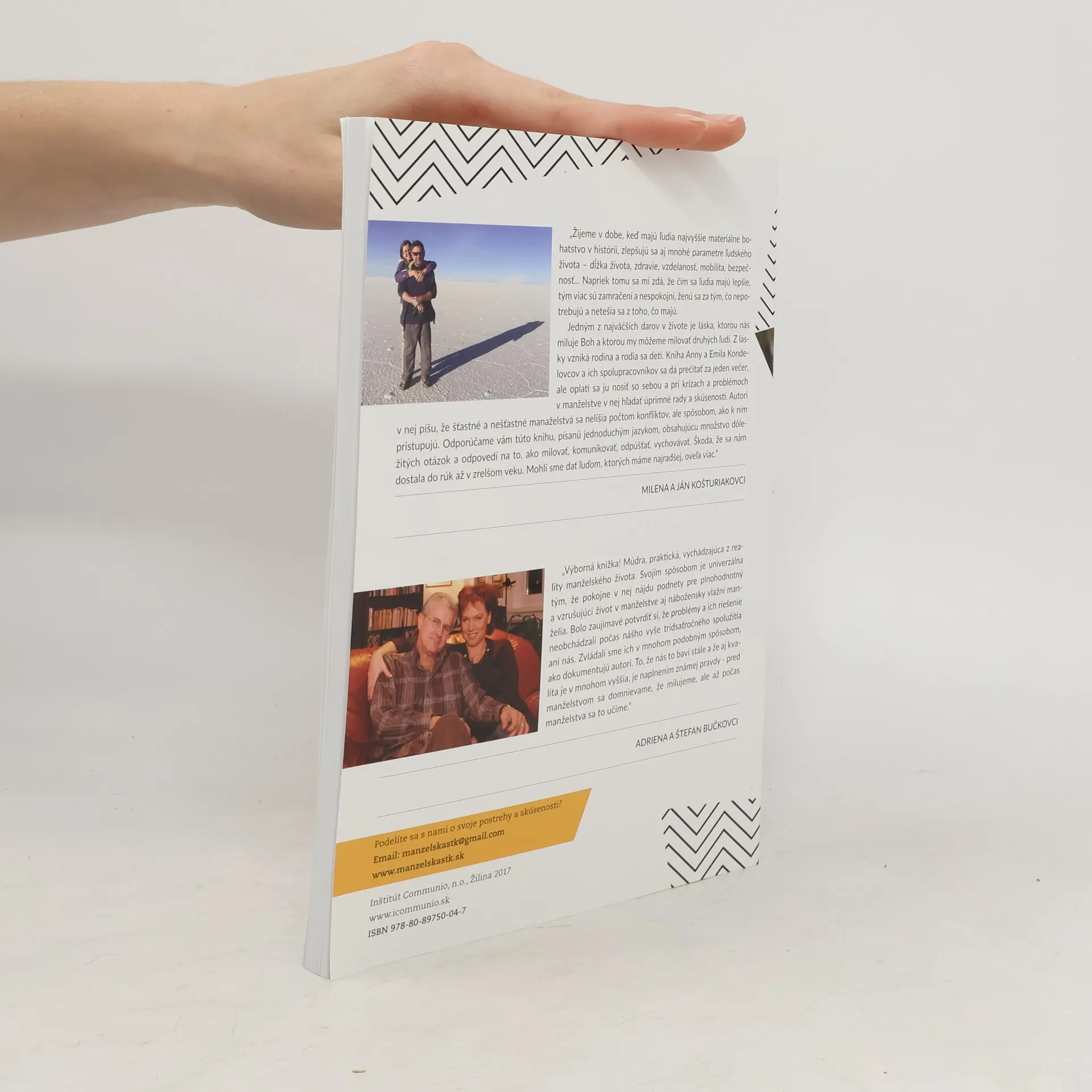 Tak ako je nebezpečné chodiť autom po cestách bez pravidelnej technickej kontroly, rovnako je nebezpečné zostávať v manželstve bez pravidelnej revízie toho, čo sa skutočne deje vo vzťahu medzi manželom a manželkou. Ako sa z STK môže stať iba formálny systém, tak sa aj zo starostlivosti o manželstvo môže stať iba rutina, ktorá nemá skutočný dopad na jeho rast. Ak je však váš záujem o manželstvo úprimný, nech vás posilňuje vedomie, že je tu ešte niekto Iný, kto vám pomôže prekonať akúkoľvek ťažkosť, ktorá by mohla vo vašom vzťahu vzniknúť. Ten, ktorý vašu lásku požehnal od začiatku, je schopný uzdraviť každú ranu a utíšiť bolesť. Stačí sa iba za-staviť a s dôverou prísť k Nemu. Možno sa iba dotknúť okraja jeho rúcha. Tým dotykom môže byť aj čítanie tejto knihy. Po veľkom úspechu Inštitút Communio, n.o. vydal v roku 2017 druhé vydanie, ktoré je obohatené o kreslené vtipy.