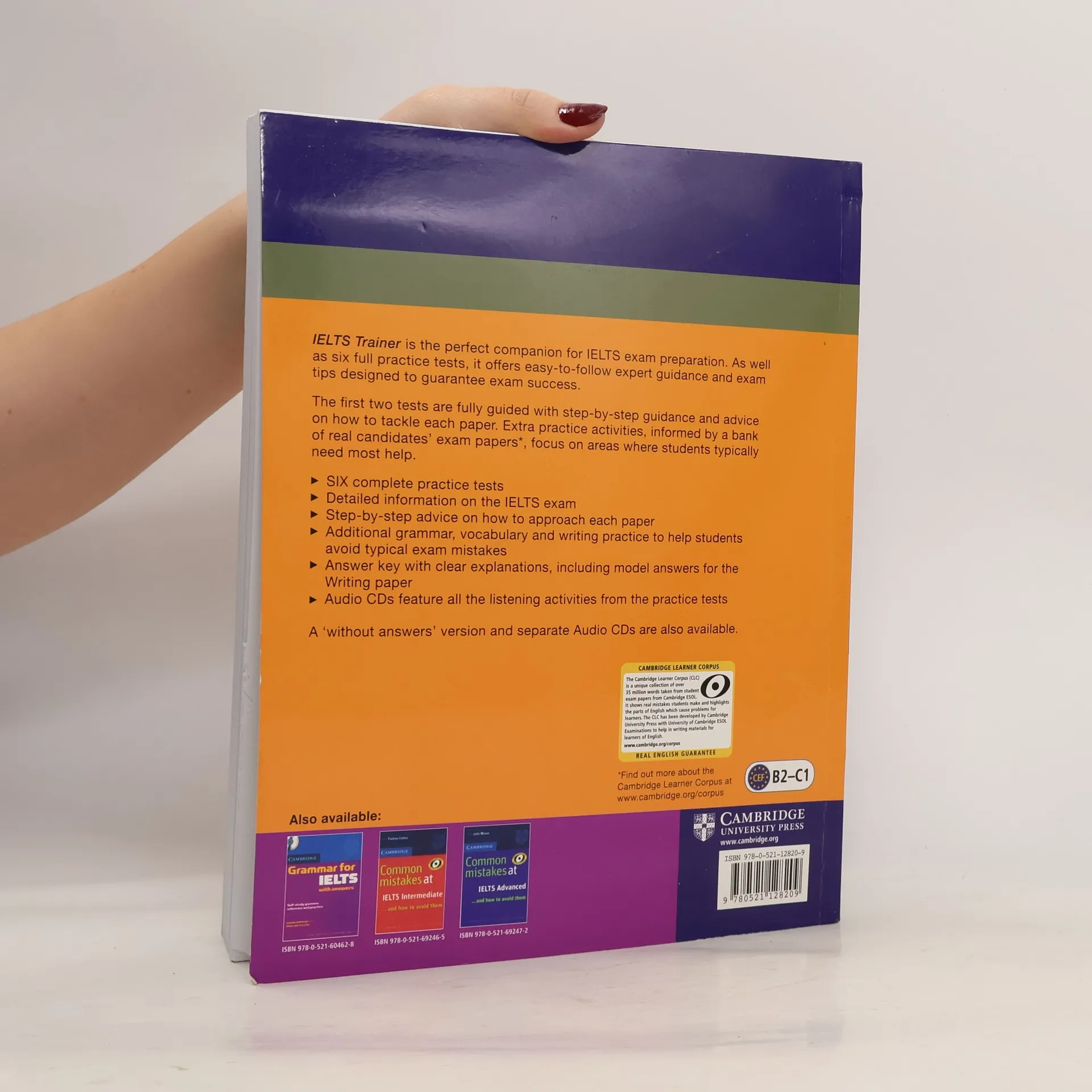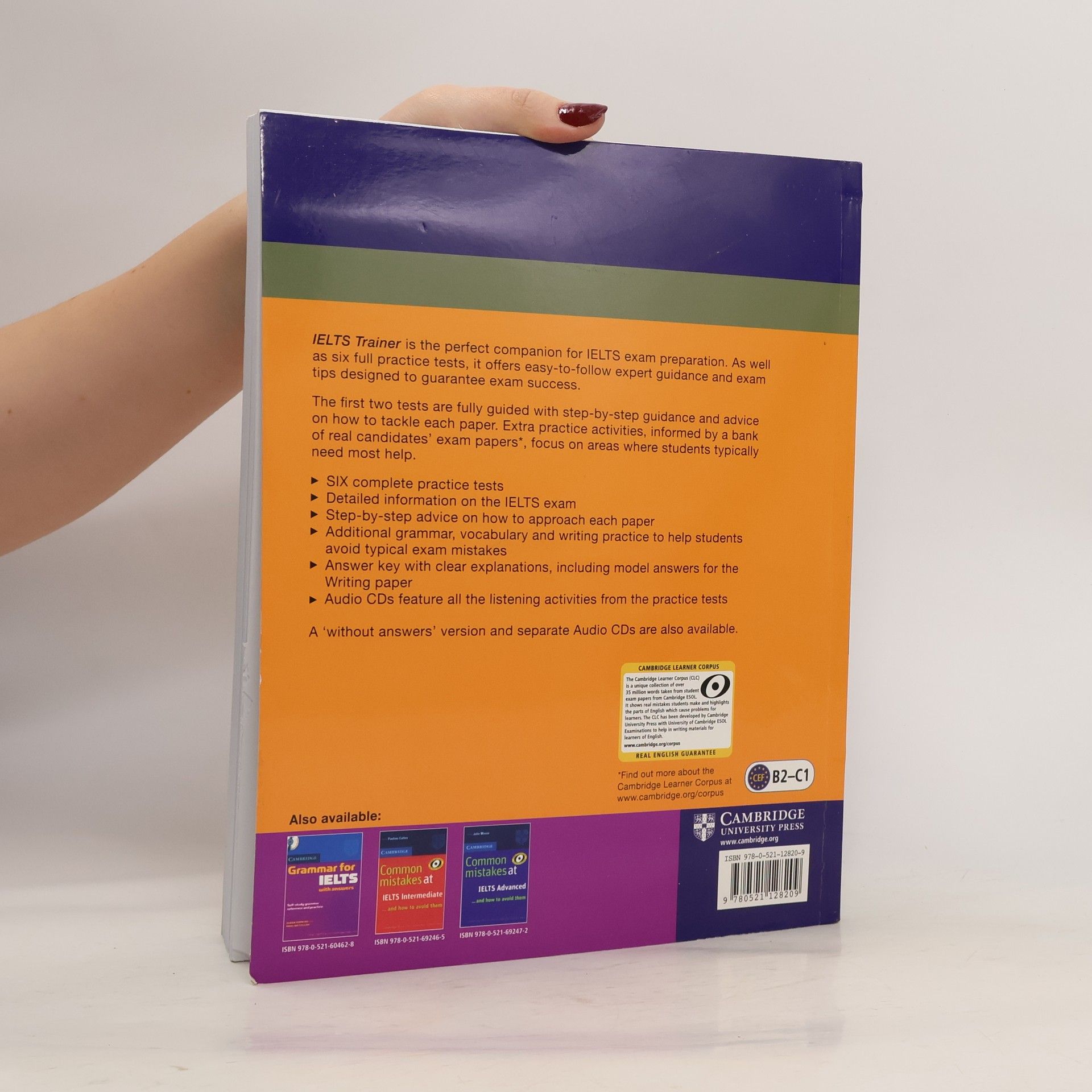 Six full practice tests plus easy-to-follow expert guidance and exam tips designed to guarantee exam success. As well as six full practice tests, IELTS Trainer offers easy-to-follow expert guidance and exam tips designed to guarantee exam success. The first two tests are fully guided with step-by-step advice on how to tackle each paper. Extra practice activities, informed by the Cambridge Learner Corpus, a bank of real candidates' exam papers, focus on areas where students typically need most help.