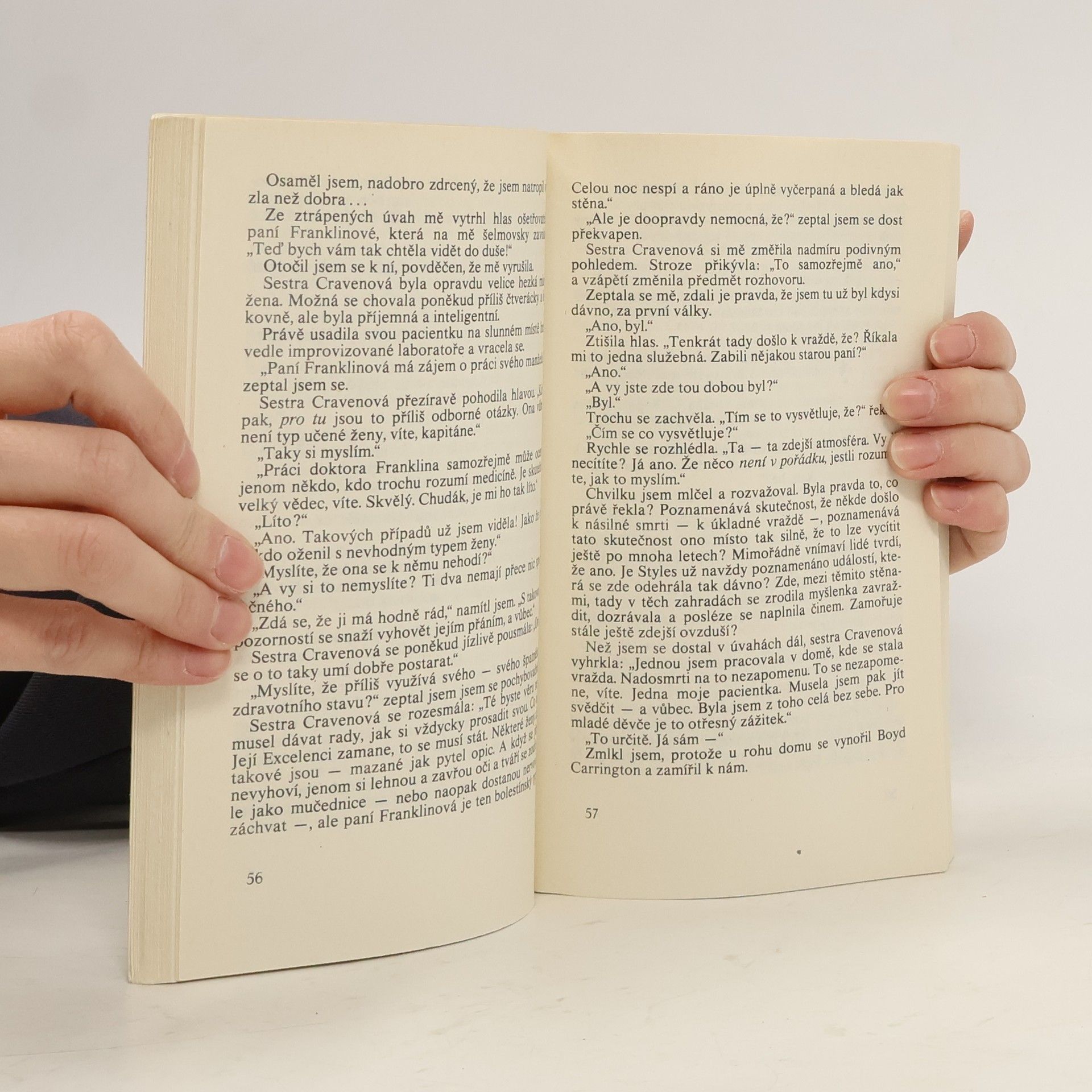 Poslední případ Hercule Poirota. Detektivní román, kterým se anglická autorka navždy rozloučila s oblíbeným literárním hrdinou. V uzavřené skupině lidí dochází k vraždě, která se stane jedním z nejtěžších a nejošidnějších Poirotových případů. Vytuší souvislost se zločinem v minulosti, objeví pachatele a když si uvědomí, že nemá dostatek důkazů pro jeho usvědčení, bere spravedlnost do svých rukou. Shodou okolností se odehrává Poirotův poslední případ na místě, kde začala jeho detektivní dráha. Edice Čtení na dovolenou. 1. vydání.
