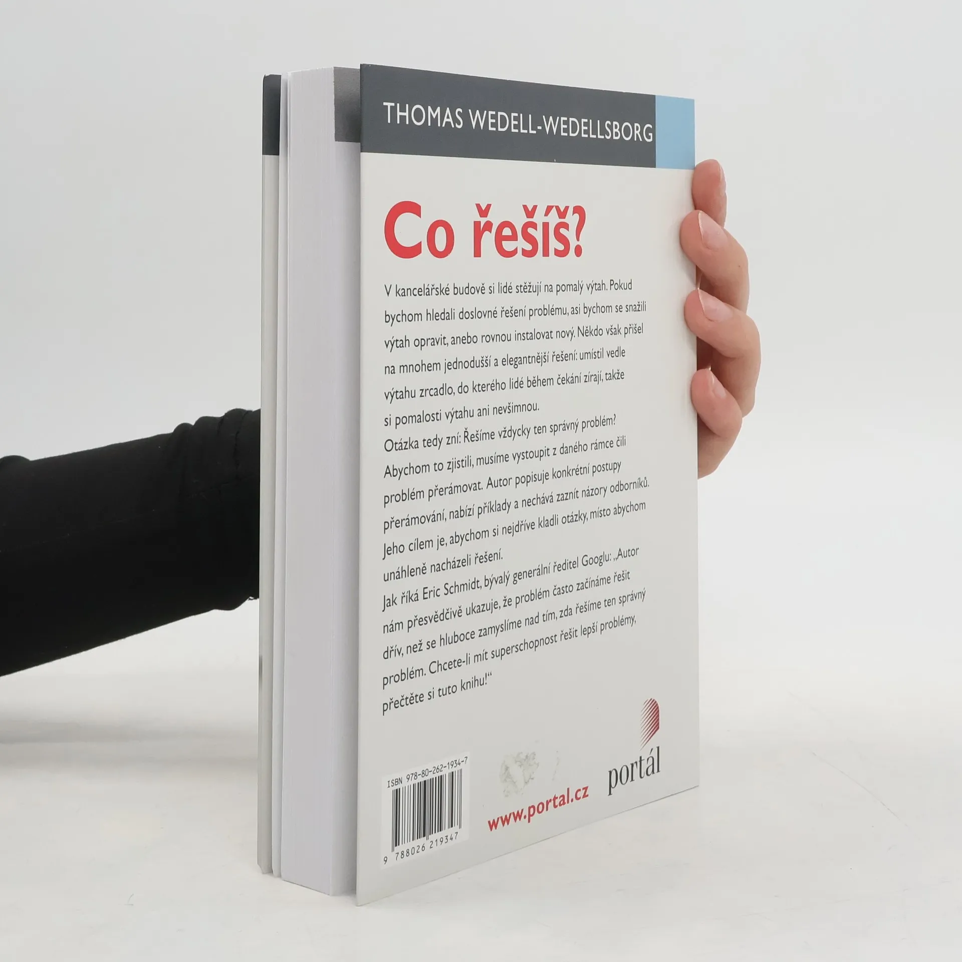 V kancelářské budově si lidé stěžují na pomalý výtah. Pokud budeme brát problém doslova, budeme se snažit výtah opravit nebo rovnou instalovat nový. Někdo však přišel na mnohem jednodušší a elegantnější řešení: umístit vedle výtahu zrcadlo, aby do něj lidé mohli při čekání fascinovaně zírat. Otázka tedy zní: Řešíme vždycky ten správný problém? Abychom to zjistili, musíme vystoupit z daného rámce čili problém přerámovat. Ve své graficky výrazné knize autor popisuje konkrétní postupy přerámování, nabízí příklady a nechává zaznít názory odborníků. Jeho cílem je, abychom si začali klást otázky, místo abychom unáhleně nacházeli řešení. Jak říká Eric Schmidt, bývalý generální ředitel Googlu: „Autor nám přesvědčivě ukazuje, že problém často začínáme řešit dříve, než se hluboce zamyslíme nad tím, zda řešíme ten správný problém. Chcete-li mít superschopnost řešit lepší problémy, přečtěte si tuto knihu.“