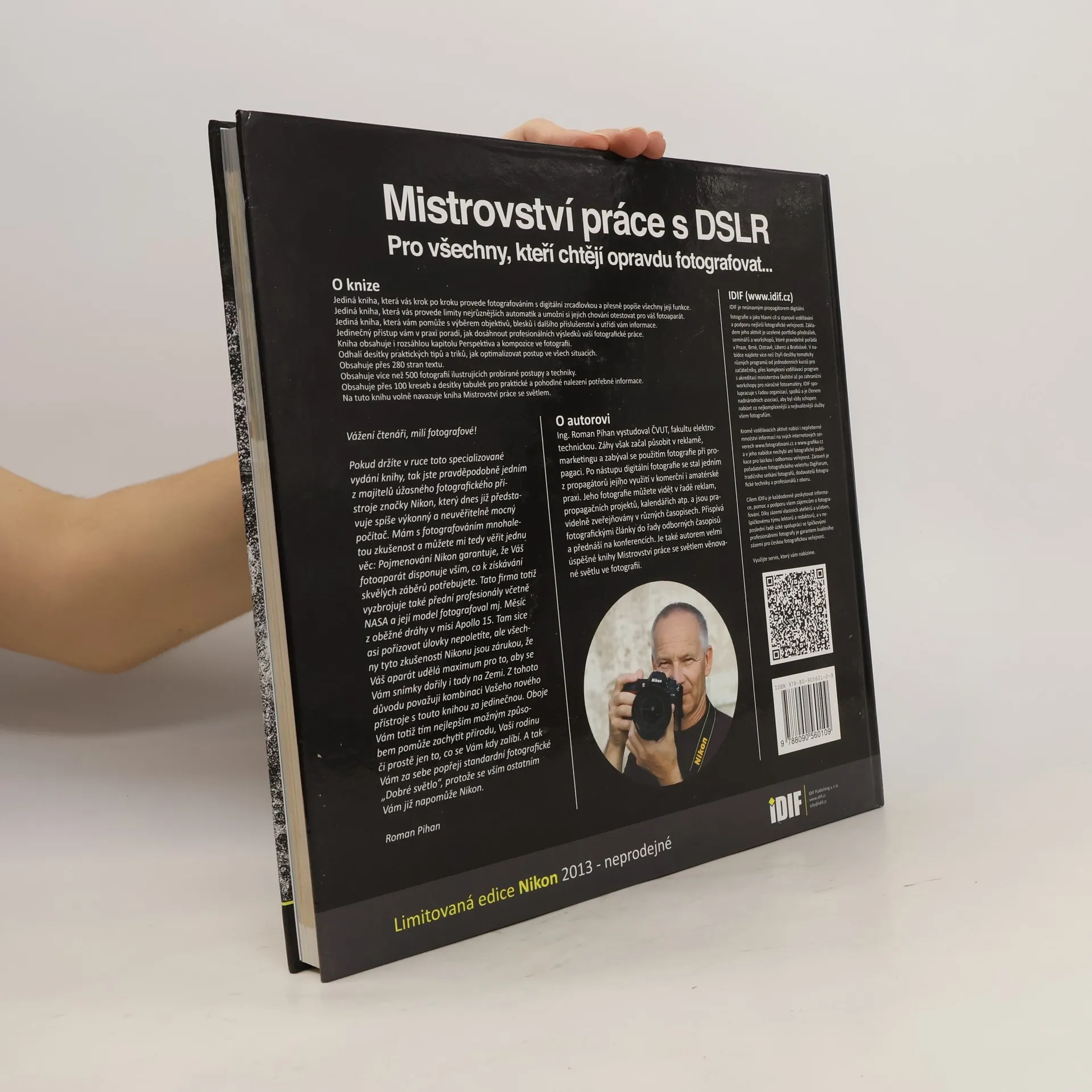Institut digitální fotografie přichází s obsáhlou výpravnou publikací Mistrovství práce s DSLR. Kniha provede laika začátky práce s digitální zrcadlovkou, ale také uspokojí zkušeného praktika tohoto typu fotografování. Kolektiv autorů na knize pracoval mnoho měsíců. V jeho čele stál Roman Pihan, který se digitálním zrcadlovkám plně věnuje přes pět let. Mistrovství práce s DSRL obsahuje více než dvě stě stran odborného textu, přes čtyři sta fotografií, kresby, grafy a tabulky pro snadnější orientaci. Autoři se zaměřili na konkrétní problémy a přesné popisy všech funkcí digitálních fotoaparátů. Vychází z dotazů uživatelů DSLR a také se pokouší předvídat otázky, které by ještě mohly čtenáře napadnout. Poskytnou spolehlivého průvodce všemi fázemi výběru přístroje, od rozhodnutí pro určitý typ aparátu, až po pravidla nákupu. Rozeberou, jak si vybrat vhodné objektivy a další příslušenství, například blesk. Mistrovství práce s DSRL je nepostradatelnou příručkou v knihovně každého fotografa.