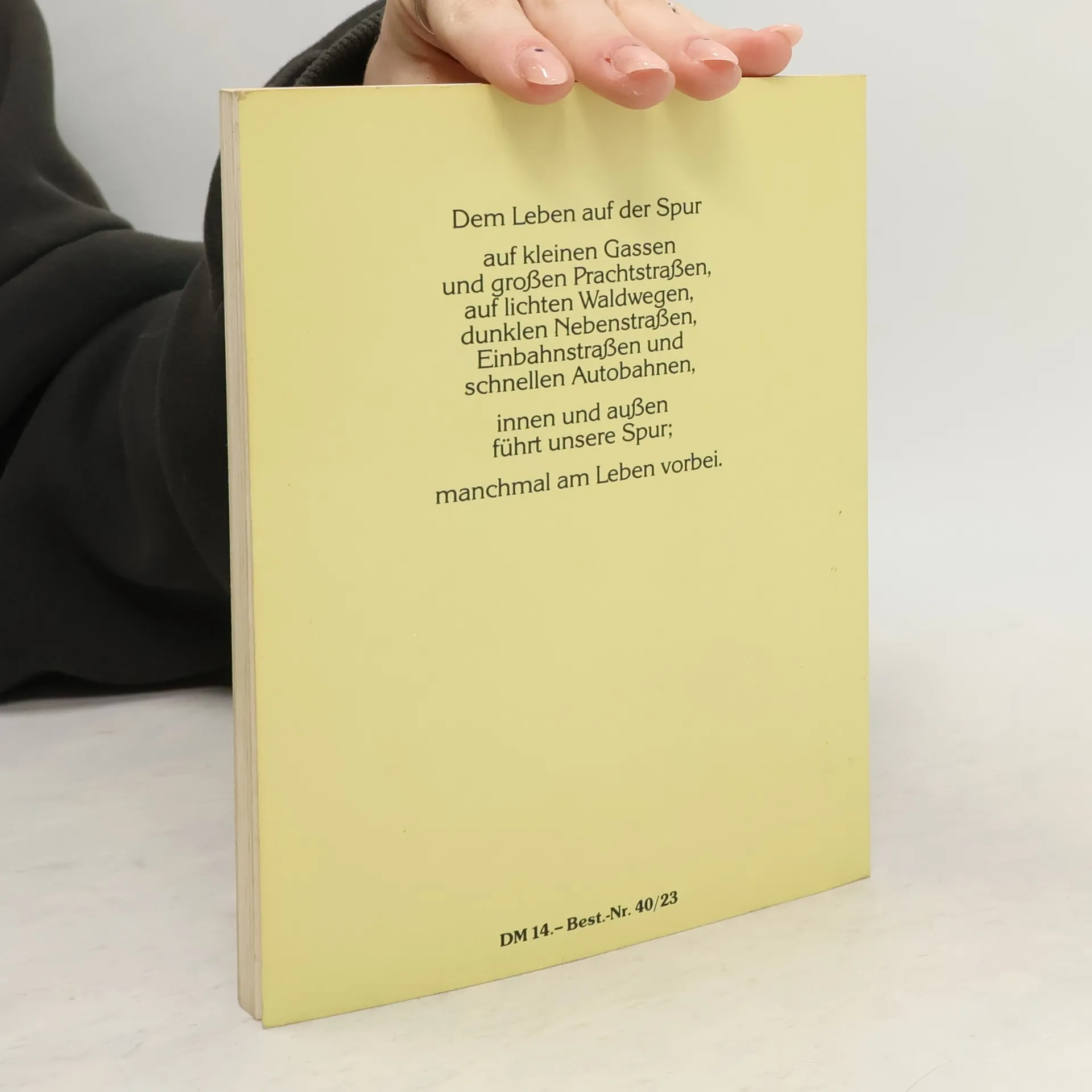 Dem Leben auf der Spur auf kleinen Gassen und großen Prachtstraßen, auf lichten Waldwegen, dunklen Nebenstraßen, Einbahnstraßen und schnellen Autobahnen, innen und außen führt unsere Spur; manchmal am Leben vorbei.