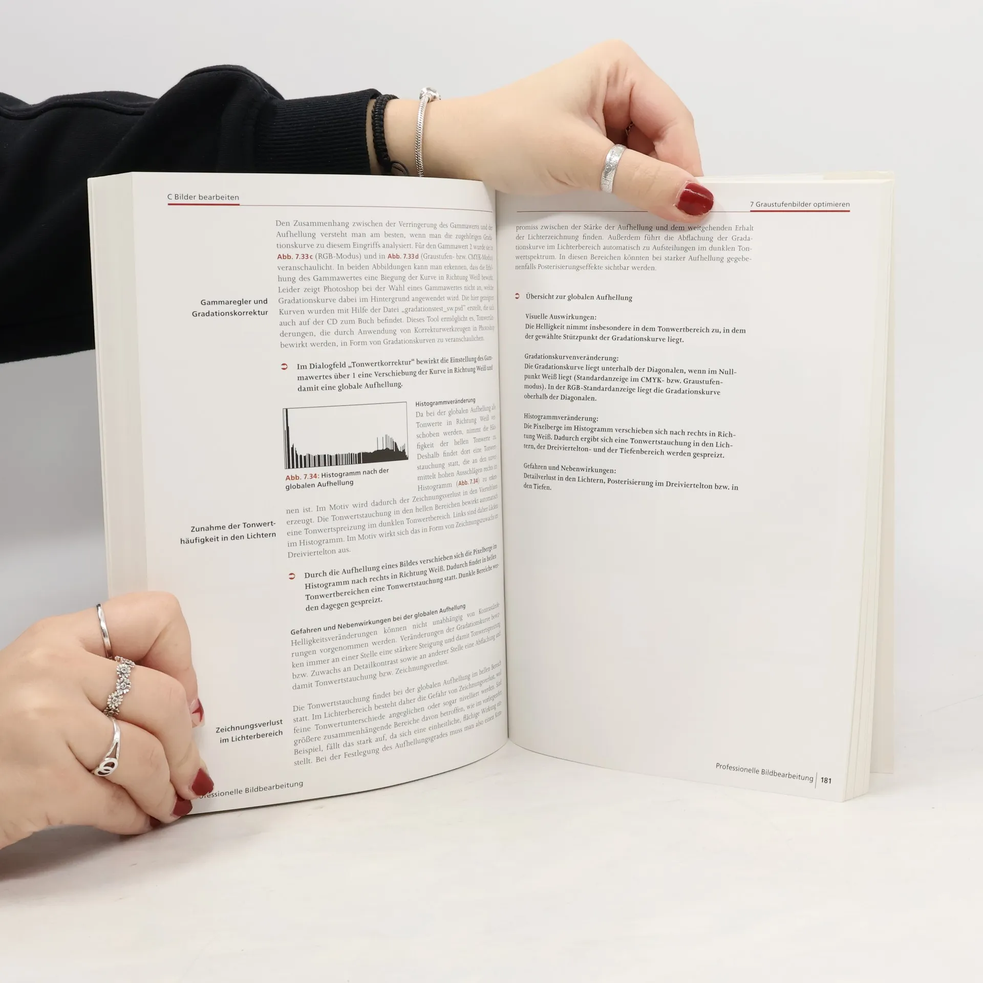 Lehrbuch zur Aus-, Fort- und Weiterbildung. br /> Vermittelt professionelle Kenntnisse im gestalterischen und technischen Umgang mit Bildern. Grundlagen der Bildsprache und -gestaltung, Datenhandling und motivspezifische Bildoptimierung sowie Aufbereitung für verschiedene Reproduktionsprozesse. Auch medienrechtliche Fragen werden geklärt. br /> Problemorientierte Erläuterungen an zahlreichen Beispielen versetzen den Leser schnell in die Lage, Bildgestaltungen sensibel zu beurteilen und sie mit technischen Mitteln professionell zu inszenieren und zu reproduzieren. br /> Die zweite überarbeitete Auflage verwendet Adobe Photoshop CS5 als Demonstrationssoftware. Da die Autoren bei der Vorstellung von Bearbeitungs-Tools aber besonderen Wert auf das Verständnis grundlegender Funktionsprinzipien legen, ist das Buch auch für Anwender anderer Programme oder Versionen hilfreich.