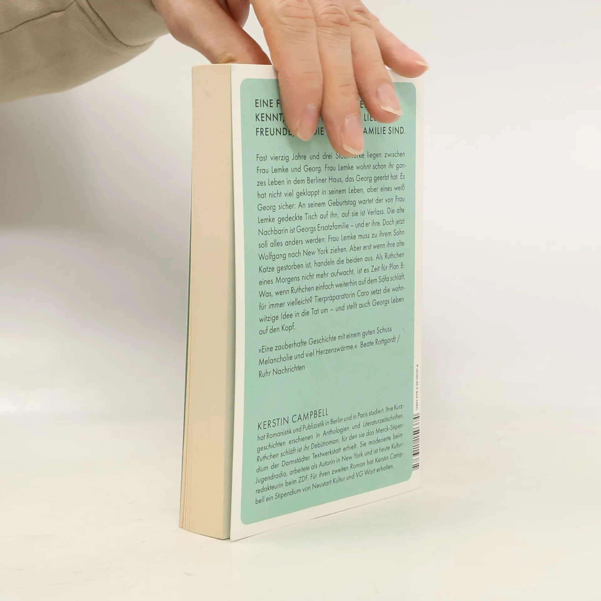 Fast vierzig Jahre und drei Stockwerke liegen zwischen Frau Lemke und Georg. Frau Lemke wohnt schon ihr ganzes Leben in dem Haus, das Georg geerbt hat. Es hat nicht viel geklappt in seinem Leben, aber eines weiß Georg sicher: An seinem Geburtstag wartet der von Frau Lemke gedeckte Tisch auf ihn, auf Frau Lemke ist Verlass. Doch jetzt soll alles anders werden: Frau Lemke muss zu ihrem Sohn Wolfgang nach New York ziehen. Nur solange ihre Katze lebt, hat Wolfgang verfügt, darf die alte Dame in Berlin bleiben. Als Ruthchen eines Morgens nicht mehr aufwacht, ist es Zeit für Plan B: Was, wenn Ruthchen einfach weiterhin auf dem Sofa schläft, für immer vielleicht? Tierpräparatorin Caro setzt die wahnwitzige Idee in die Tat um – und stellt auch Georgs Leben auf den Kopf. Eine Freundschaft, die kein Alter kennt, eine unverhoffte Liebe und Freunde, die die bessere Familie sind.