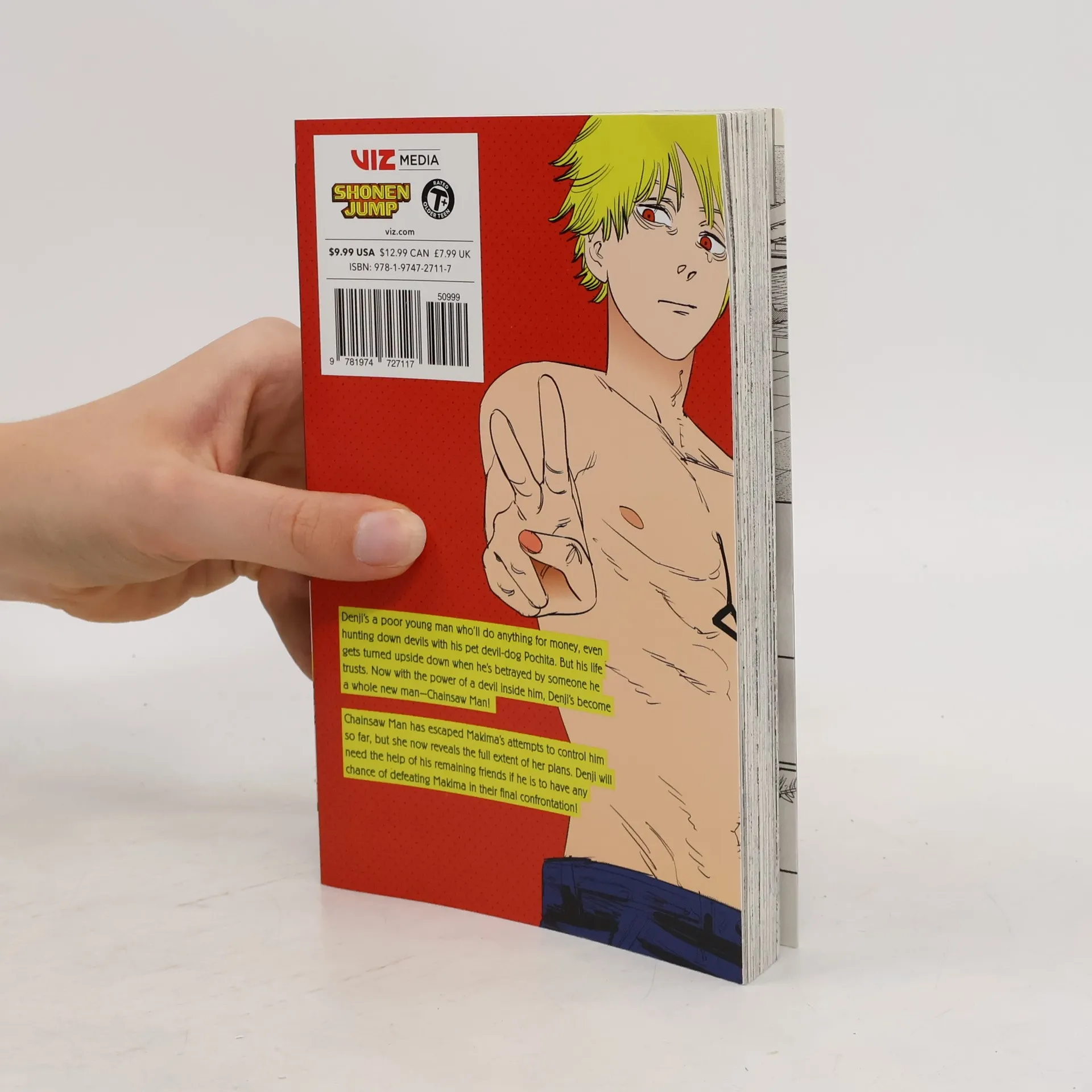 Broke young man + chainsaw dog demon = Chainsaw Man! Denji was a small-time devil hunter just trying to survive a harsh world. After being killed on a job, Denji is revived by his pet devil-dog Pochita and becomes something new and dangerous—Chainsaw Man! Chainsaw Man has escaped Makima’s attempts to control him so far, but she now reveals the full extent of her plans. Denji will need the help of his remaining friends if he is to have any chance of topping Makima in their final confrontation!