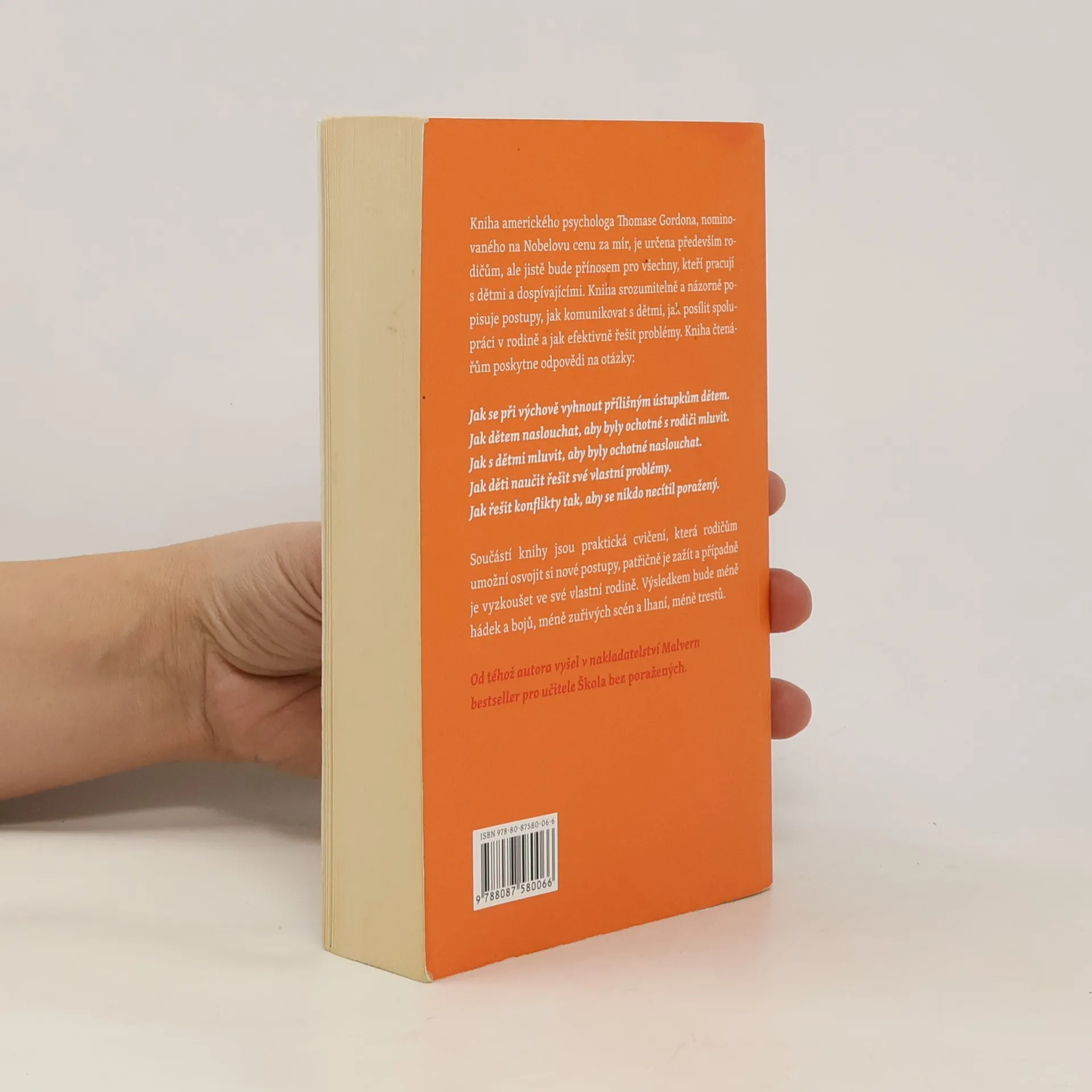 Kniha amerického psychologa Thomase Gordona srozumitelně a názorně popisuje postupy, jak komunikovat s dětmi, jak posílit spolupráci v rodině a jak efektivně řešit problémy.Tato kniha čtenářům poskytne odpovědi na otázky: Jak se při výchově vyhnout přílišným ústupkům dětem. Jak dětem naslouchat, aby byly ochotné s rodiči mluvit. Jak s dětmi mluvit, aby byly ochotné naslouchat. Jak děti naučit řešit své vlastní problémy. Jak řešit konflikty tak, aby se nikdo necítil poražený..