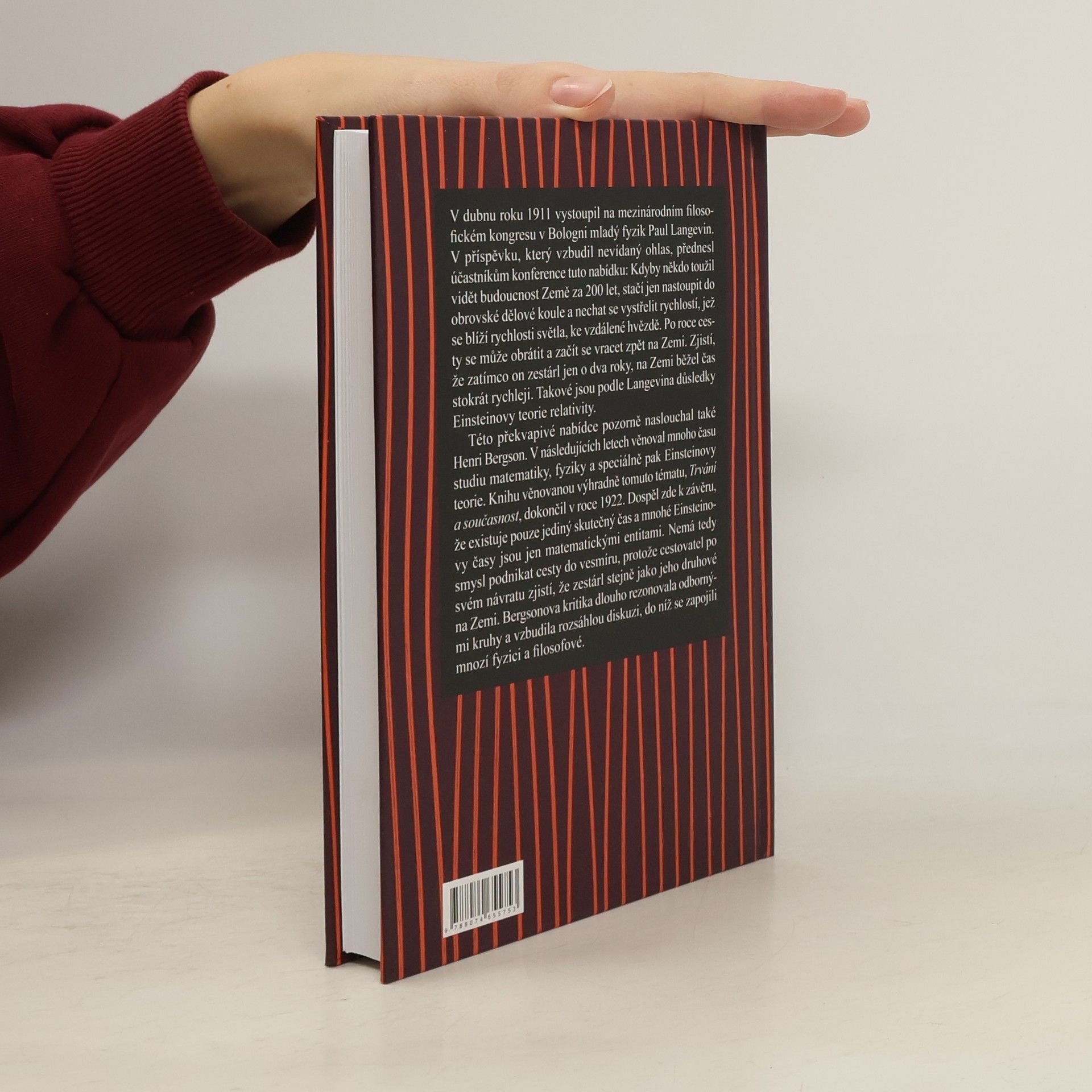 Trvání a současnost. O Einsteinově teorii relativity. Přeložili a úvodní studií opatřili Radka a Tomáš Vališkovi. V dubnu roku 1911 vystoupil na mezinárodním filosofickém kongresu v Bologni mladý fyzik Paul Langevin. V příspěvku, který vzbudil nevídaný ohlas, přednesl účastníkům konference tuto nabídku: Kdyby někdo toužil vidět budoucnost Země za 200 let, stačí jen nastoupit do obrovské dělové koule a nechat se vystřelit rychlostí, jež se blíží rychlosti světla, ke vzdálené hvězdě. Po roce cesty se může obrátit a začít se vracet zpět na Zemi. Zjistí, že zatímco on zestárl jen o dva roky, na Zemi běžel čas stokrát rychleji. Takové jsou podle Langevina důsledky Einsteinovy teorie relativity. Této překvapivé nabídce pozorně naslouchal také Henri Bergson. V následujících letech věnoval mnoho času studiu matematiky, fyziky a speciálně pak Einsteinovy teorie. Knihu věnovanou výhradně tomuto tématu, Trvání a současnost, dokončil v roce 1922. Dospěl zde k závěru, že existuje pouze jediný skutečný čas a mnohé Einsteinovy časy jsou jen matematickými entitami. Nemá tedy smysl podnikat cesty do vesmíru, protože cestovatel po svém návratu zjistí, že zestárl stejně jako jeho druhové na Zemi. Bergsonova kritika dlouho rezonovala odbornými kruhy a vzbudila rozsáhlou diskuzi, do níž se zapojili mnozí fyzici a filosofové.