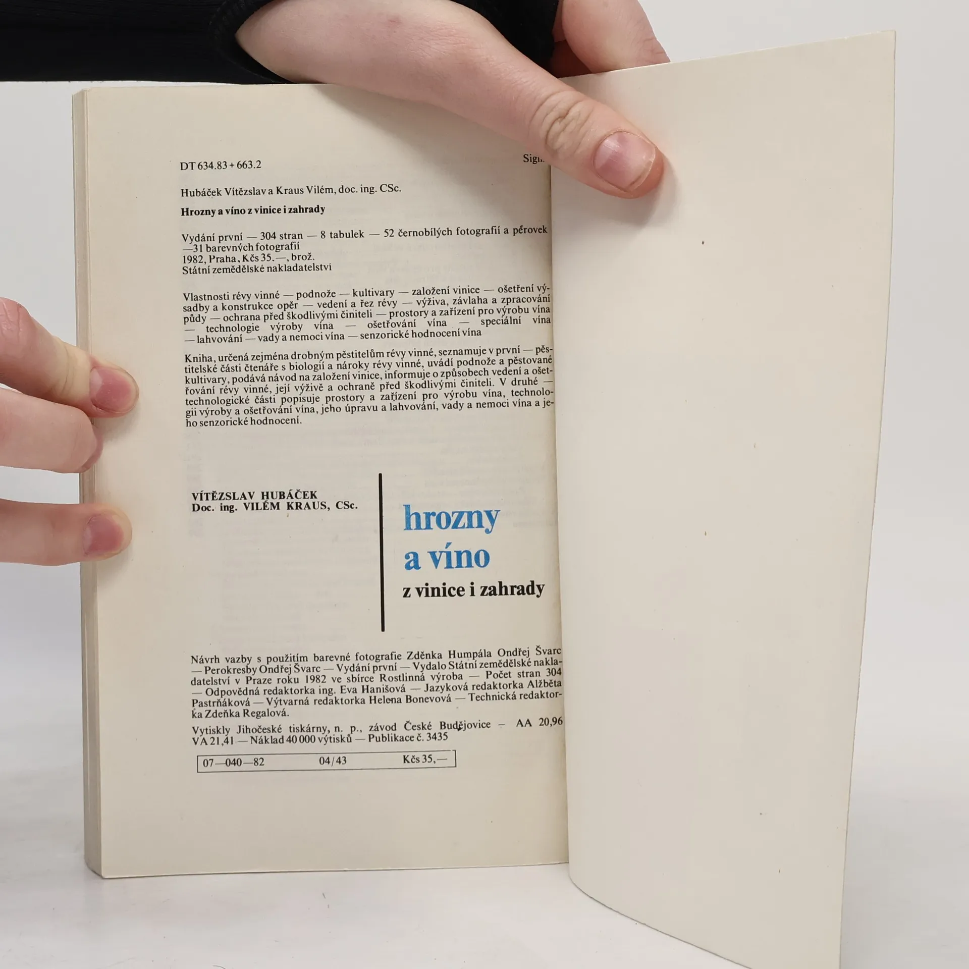 Kniha, určená zejména drobným pěstitelům révy vinné, seznamuje v první - pěstitelské části čtenáře s biologií a nároky révy vinné, uvádí podnože a pěstované kultivary, podává návod na založení vinice, informuje o způsobech vedení a ošetřování révy vinné, její výživě a ochraně před škodlivými činiteli. V druhé - technologické části popisuje prostory a zařízení pro výrobu vína, technologii výroby a ošetřování vína, jeho úpravu a lahvování, vady a nemoci vína a jeho senzorické hodnocení. Návrh vazby s použitím barevné fotografie Zdeňka Humpála Ondřej Švarc. Perokresby Ondřej Švarc. 304 stran, 8 tabulek, 52 černobílých fotografií a pérovek, 31 barevných fotografií. Vydání první.