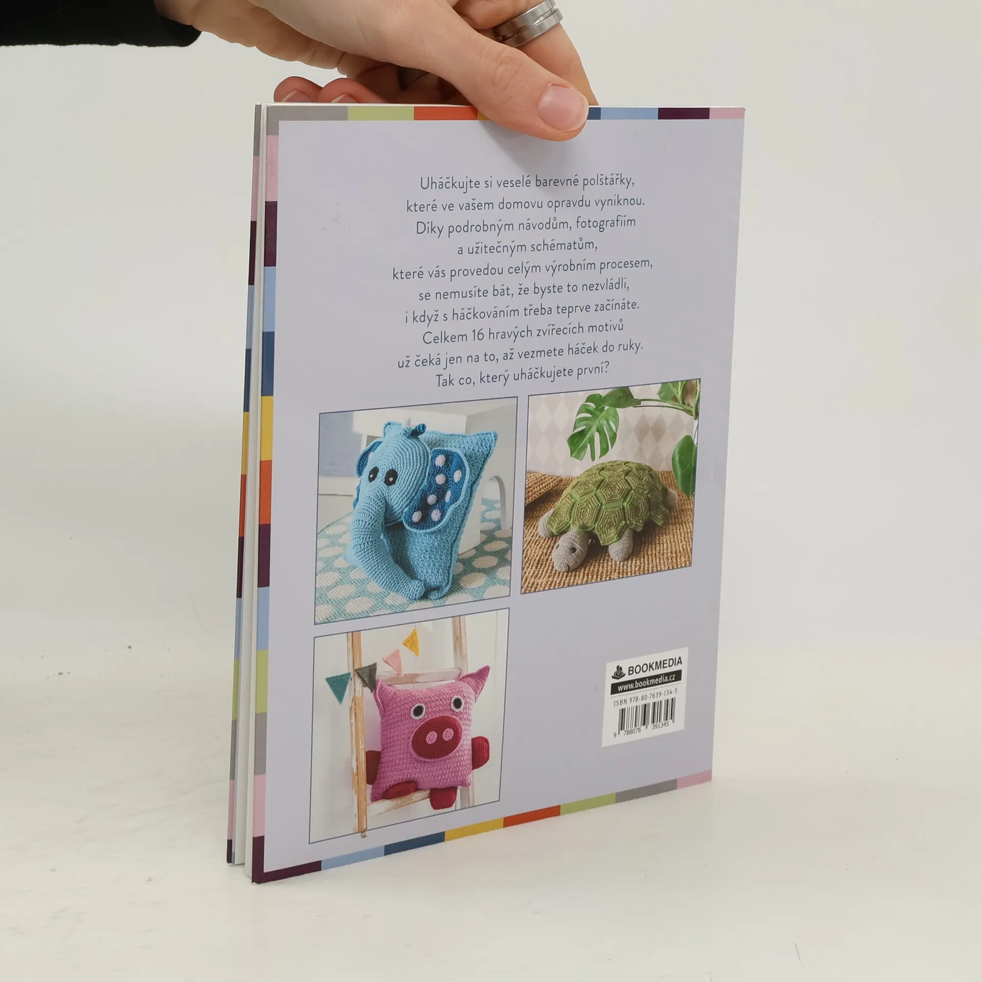 Slon, prasátko, želva nebo kočka. Tyto zvířecí polštáře je lehké vyrobit a jsou také nenáročné na péči. Dobře poslouží ve funkci plyšáka nebo jako ozdobný polštářek. V obou případech rozzáří každý domov, protože jsou barevné, hravé a hlavně ručně vyrobené. Díky podrobným návodům se vám navíc budou snadno háčkovat, jelikož je každý postup doprovázen barevnými fotografiemi a schématy.