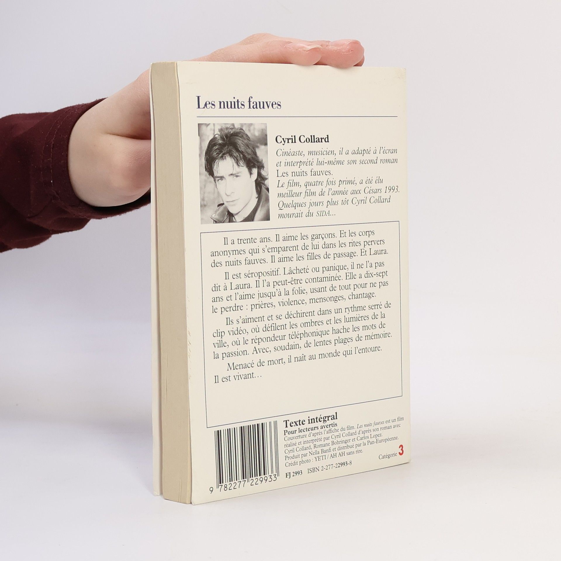 Il a 30 ans. Il aime des garçons ; Samy, à moitié voyou ; Jamel, fils de l’Islam et de Coca-Cola. Et les corps anonymes qui s’emparent de lui dans les rites pervers des nuits fauves. Il aime des filles de passage. Et Laura. Il veut tout. Ou peut-être rien.Il est séropositif. Lâcheté ou panique, il ne l’a pas dit à Laura, la première fois qu’ils ont fait l’amour. Il l’a peut-être contaminée. Elle a 17 ans. Elle l’aime, sans mesure, jusqu’à la folie, usant de tout pour ne pas le perdre : prières, violences, mensonges, chantages.Ils se prennent et se déprennent dans un rythme serré de clip où les rues basculent devant les motos, où la caméra vidéo filme les ombres et les lumières de la ville, où le répondeur téléphonique hache les mots de la passion. Avec, soudain, de lentes plages de mémoire – celles de l’adolescence, du sang arabe, de lieux solaires.Alors un nouvel ordre s’établit : menacé de mort, il naît au monde qui l’entoure, à l’amour fou de ce qui est. Il est vivant.Le film Les nuits fauves, dont Cyril Collard a assumé l’adaptation, la réalisation et la musique, où il joue le rôle vedette aux côtés de la jeune Romane Bohringer, est devenu un « film-culte ».